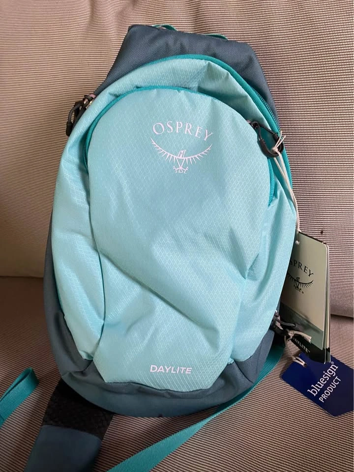 Osprey Daylight Sling in Jetstream Blue Colour 6L. Featuring breathable and soft spacermesh material on a single anatomically shaped shoulder strap for next-to-skin comfort. A front zippered mesh pocket stores smaller easy-to-access items, while the main compartment offers organization sleeves and a key-clip. Selling because I preferred a different colour. Brand new. Real Osprey. Final sale. Cash only
