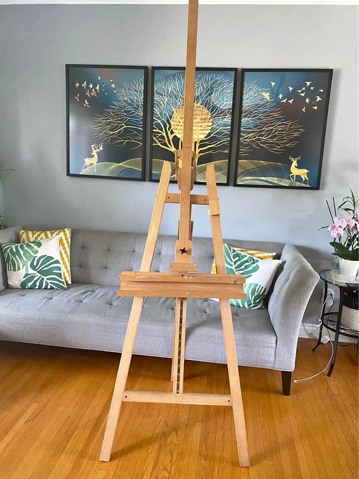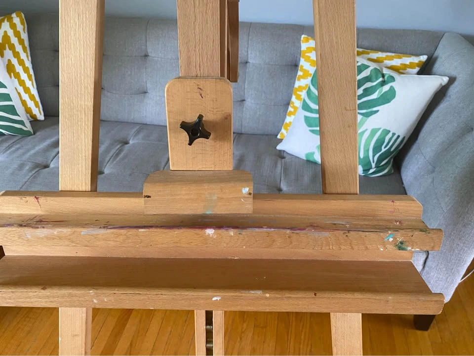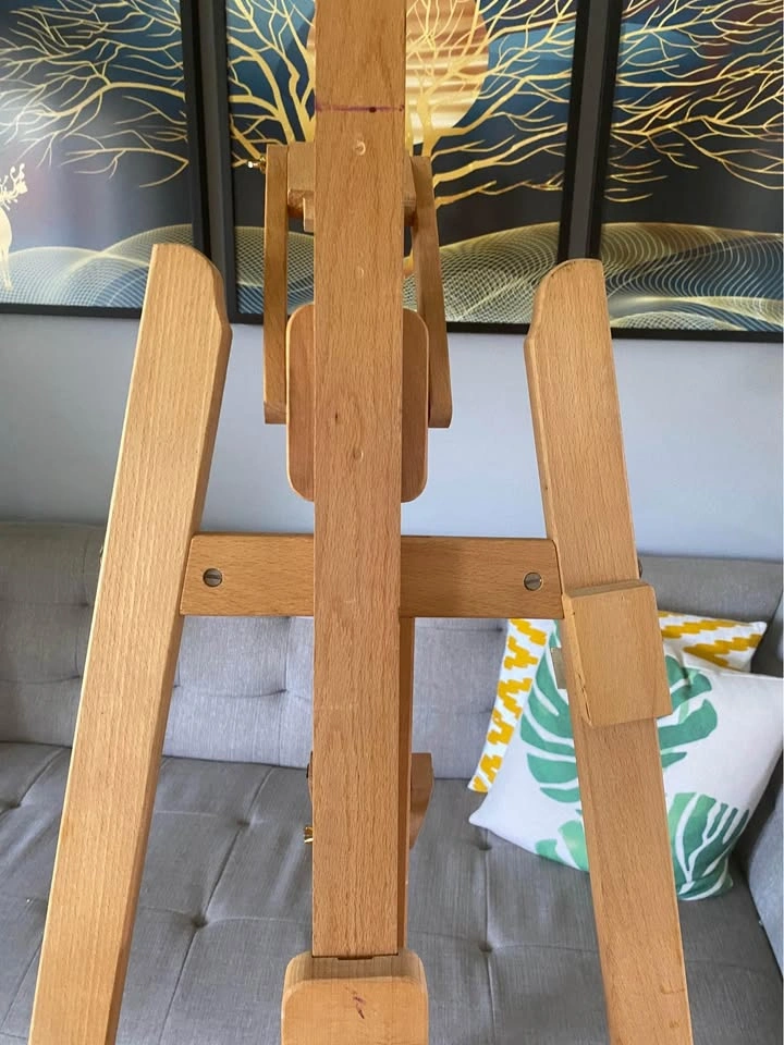 Constructed from varnished beechwood with a built-in ratchet system that allows for easy canvas height adjustment. Minimum height is 61 inches (155cm). Dimensions: 54 cm x 61 cm x 255 cm maximum / 21.25 x 24 x 88.5 inches maximum