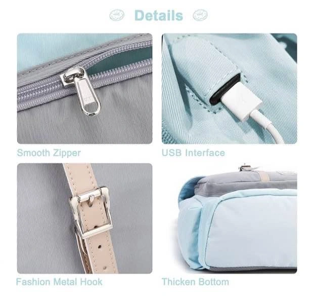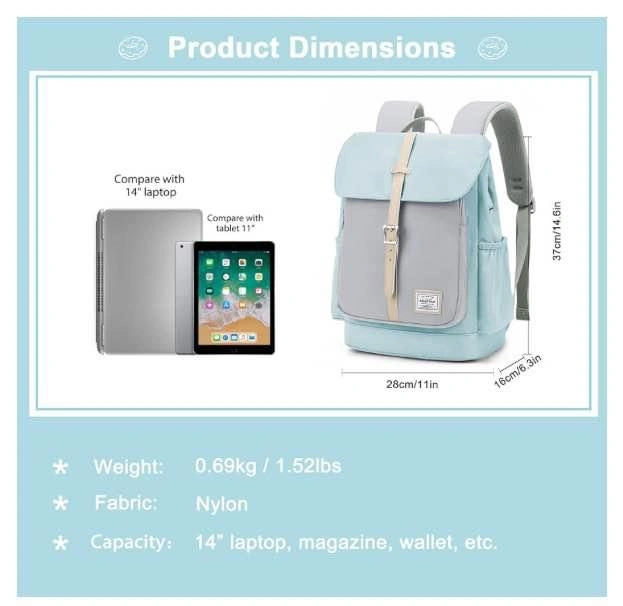 A USB cable is sewn in, so you can connect a power bank and then plug in your smartphone from outside (Mobile Power is not included). The backpack is made of very strong and durable nylon. The material is water repellent, scratch and cut resistant and minor stains or light dirt can be quickly removed with a damp cloth. Size 11"*6.3"*14.6"(28 * 16 *37) The backpack offers space for the important things of everyday life incl. separation for a 14" laptop or tablet inside. The elastic fastening strap makes your device even more secure With the luggage strap, this travel backpack can be stowed on the trolley suitcase and easy to push. Optimal as a backpack for city tour, school, university but also ideal for work or relaxed adventures on weekends