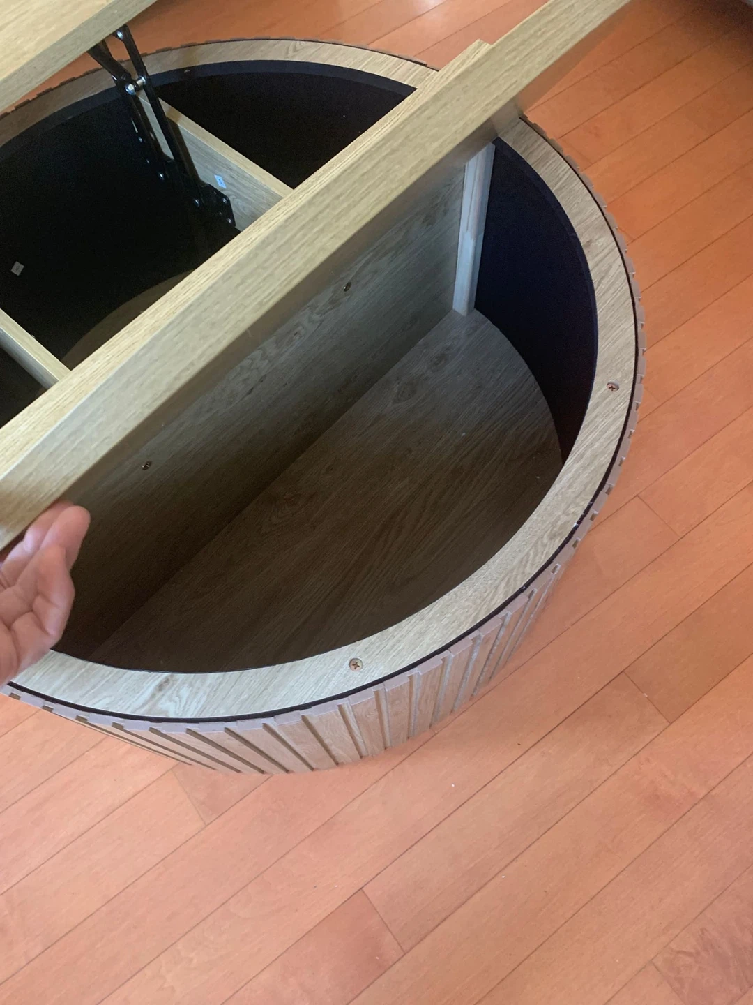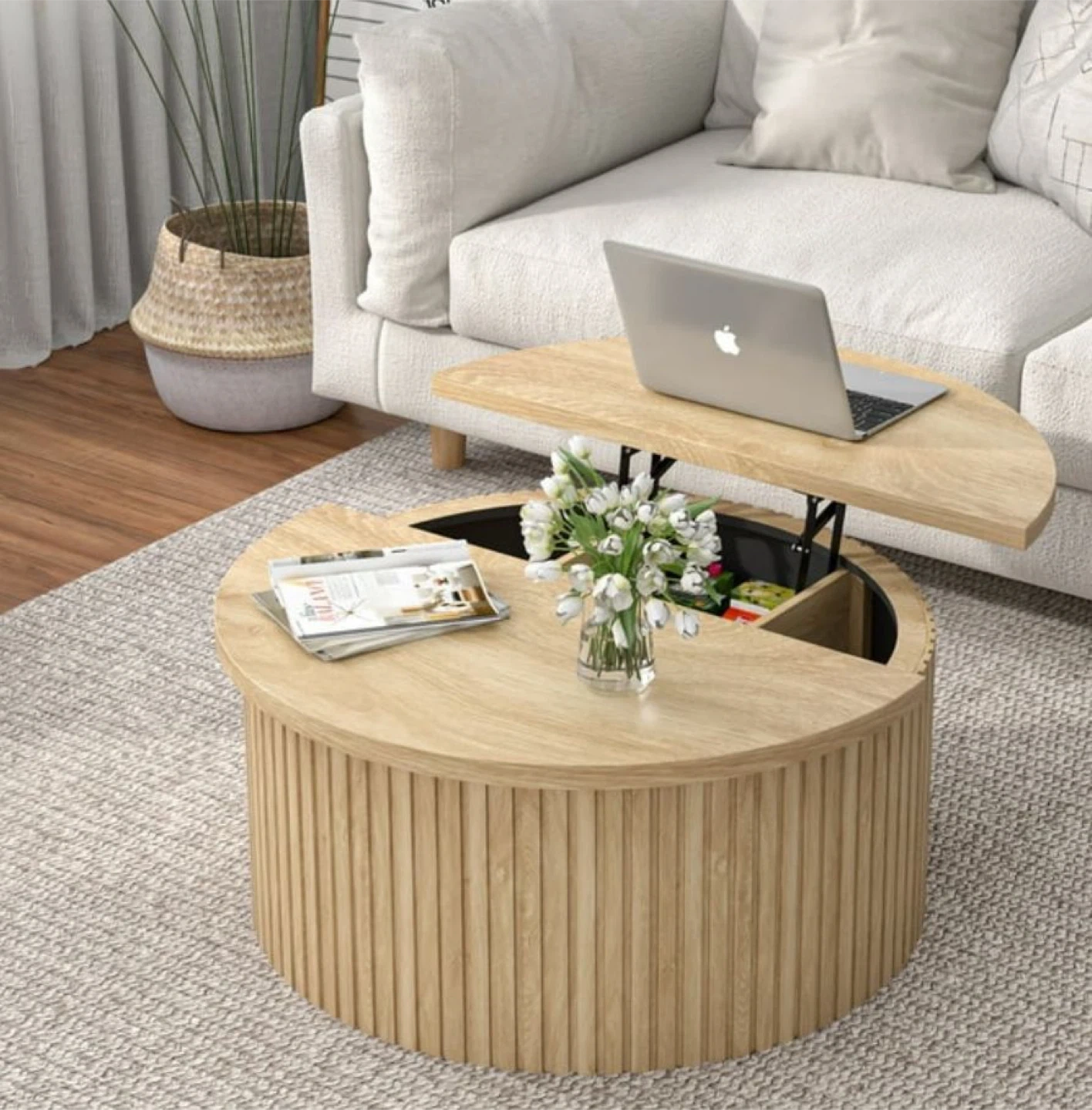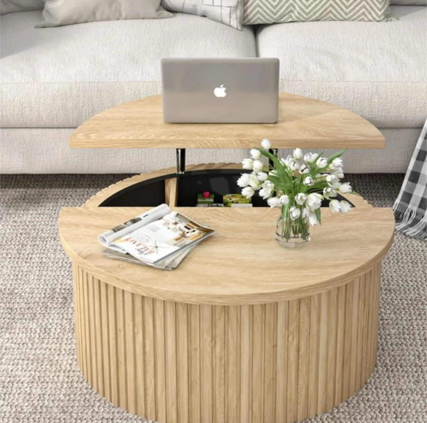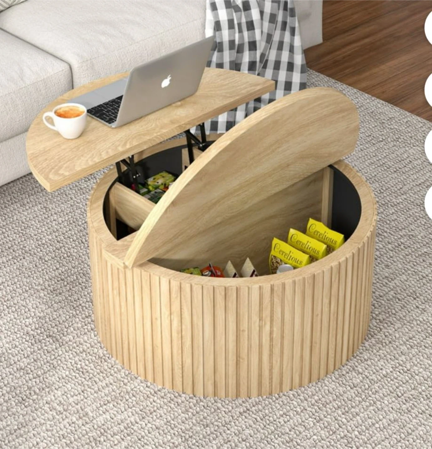Selling a round lift-top coffee table! It's perfect for adding a touch of style and functionality to your living room. The lift-top design provides a convenient surface for working or dining, while the storage compartment underneath helps keep your space organized