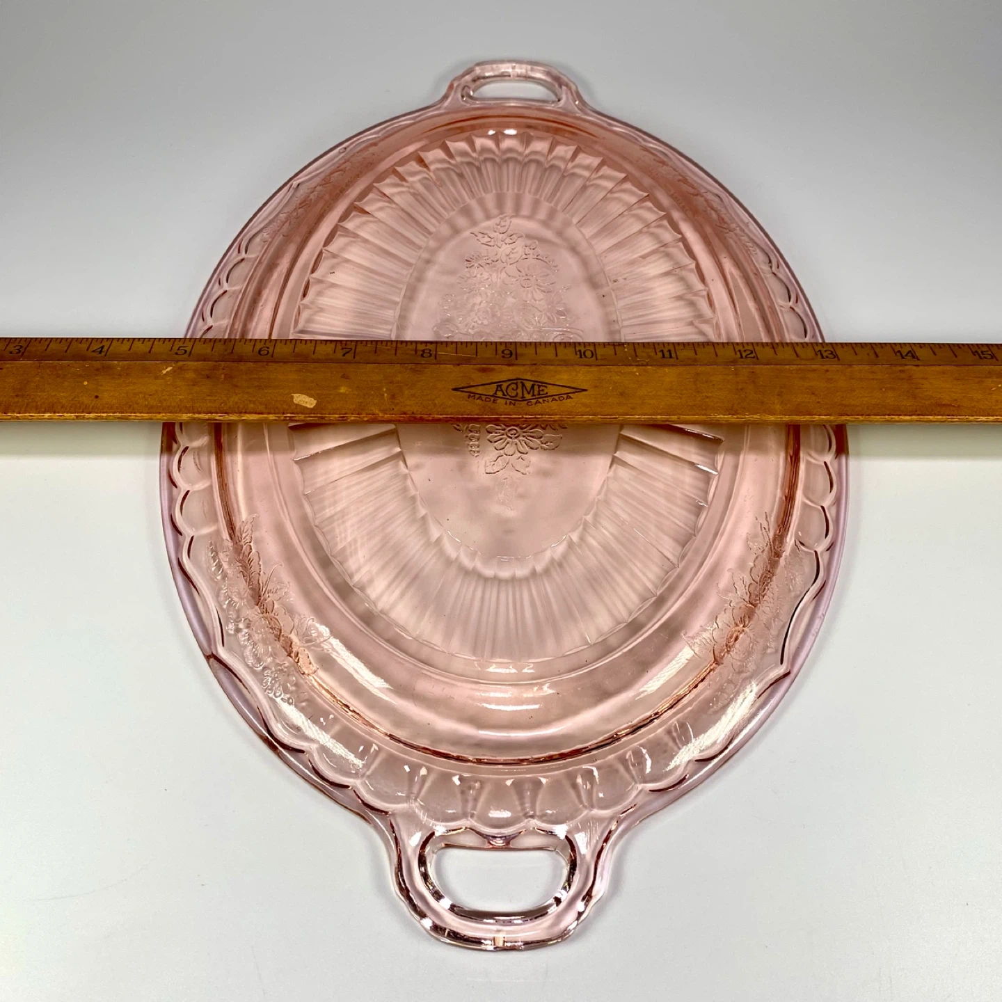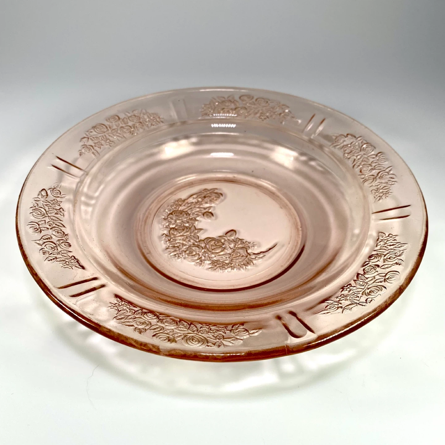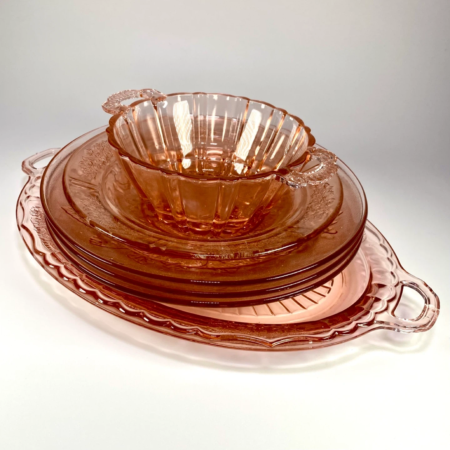 6x vintage pink depression pressed glass dishes, including: Anchor Hocking Mayfair Open Rose oval serving platter, set of 3 Firma rose dinner plates, Anchor Hocking Old Cafe bowl with handles, and Federal Sharon / Cabbage Rose shallow bowl. Platter ~14x9β π₯$30/lot of 6 β Yes, it is available π Pick up near Bloor & Ossington π Downtown delivery extra π¦ Ask about shipping