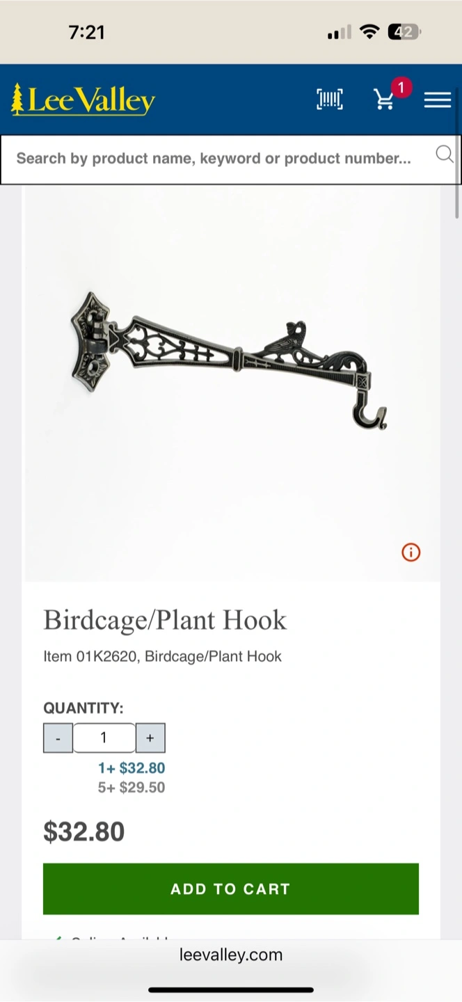 Selling two brand new Lee Valley birdcage/plant hook! It's still in its original packaging. This hook is perfect for hanging birdcages or plants, adding a touch of elegance to your home or garden. Originally bought for $32.80 each $20 each or $30 for the pair