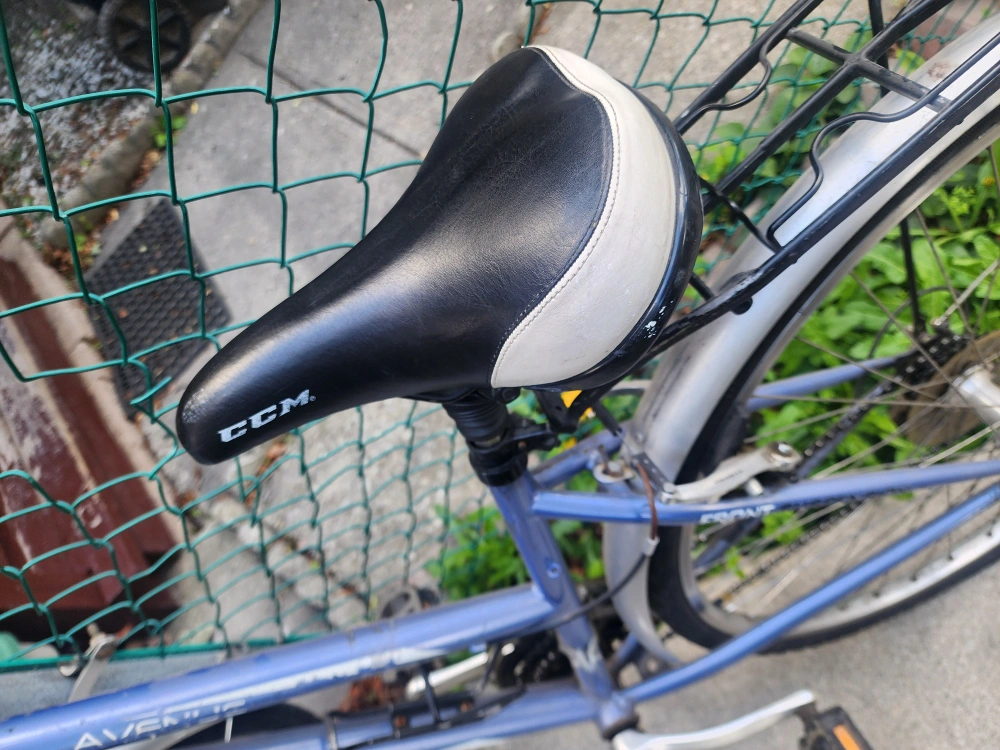 Selling a CCM Avenue bike in good condition. It features Shimano RevoShift with 6 speeds and front suspension. Great for city or recreational rides!