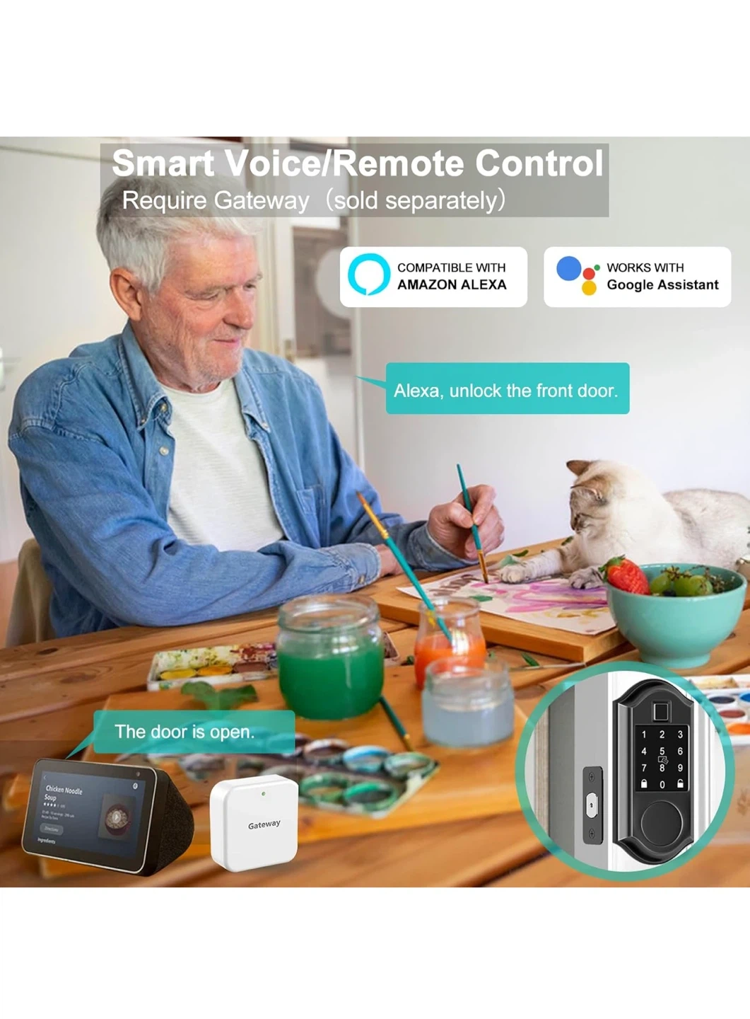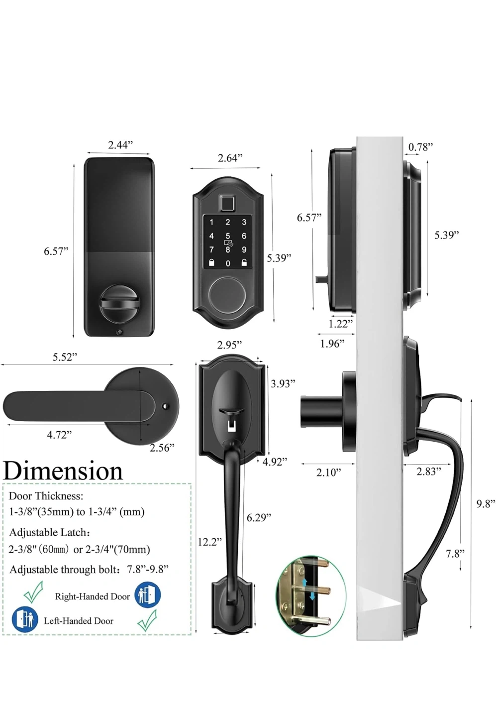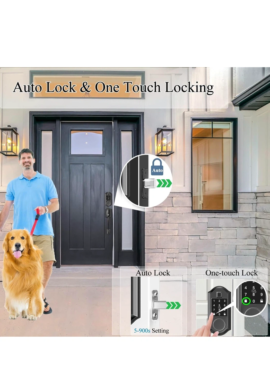 Selling a Narpult Smart Front Door Lock with keyless entry. It features APP control, fingerprint access, and a deadbolt in matte black. It has multiple ways to access including code, fobs, and physical keys. It also has app control, IC cards, physical keys, and auto lock.