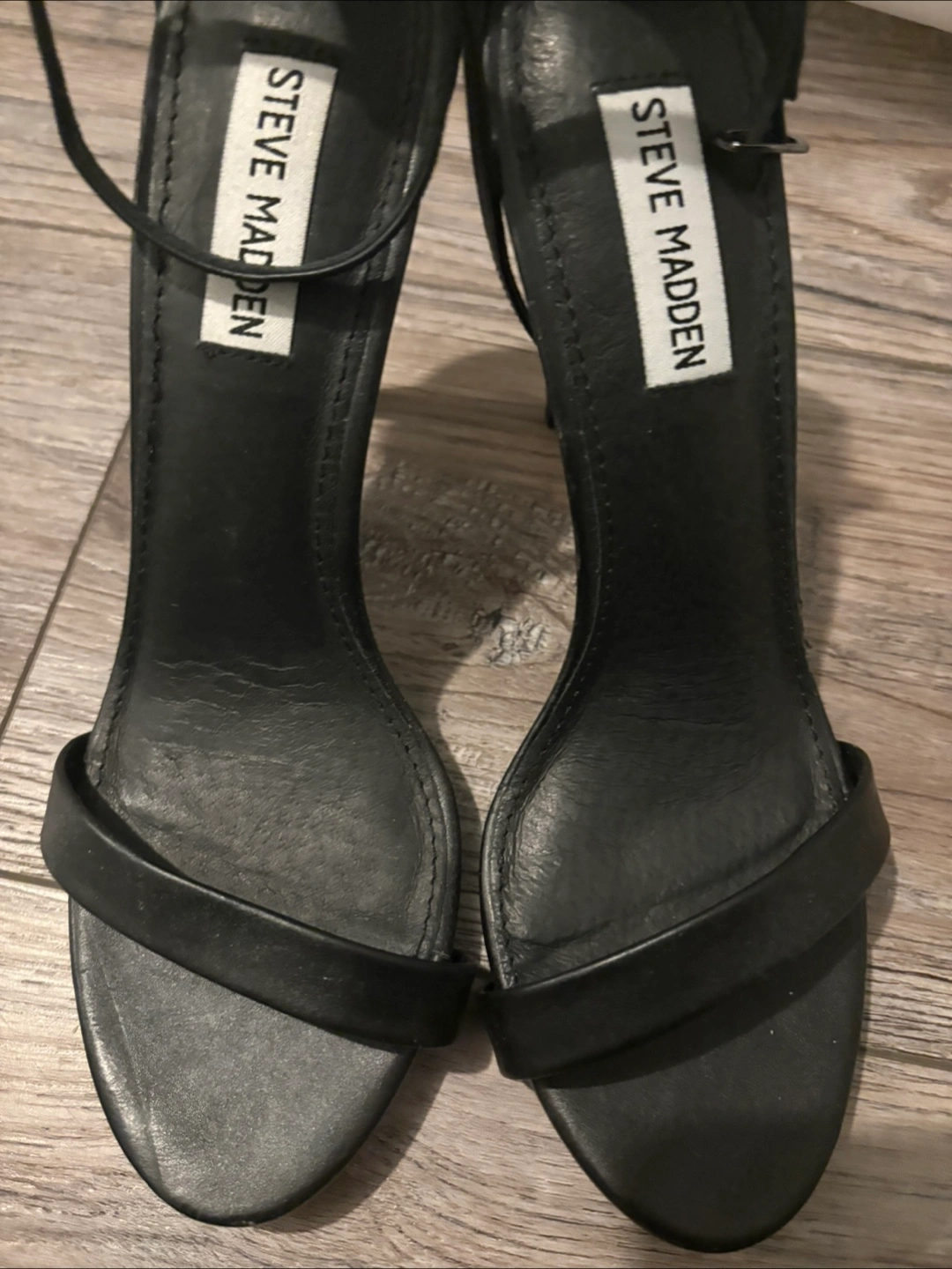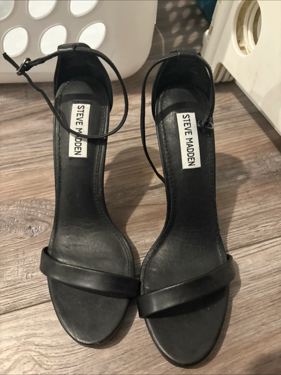 Selling a pair of Steve Madden black heels in size 8M. They're in good condition and ready for a new home!
