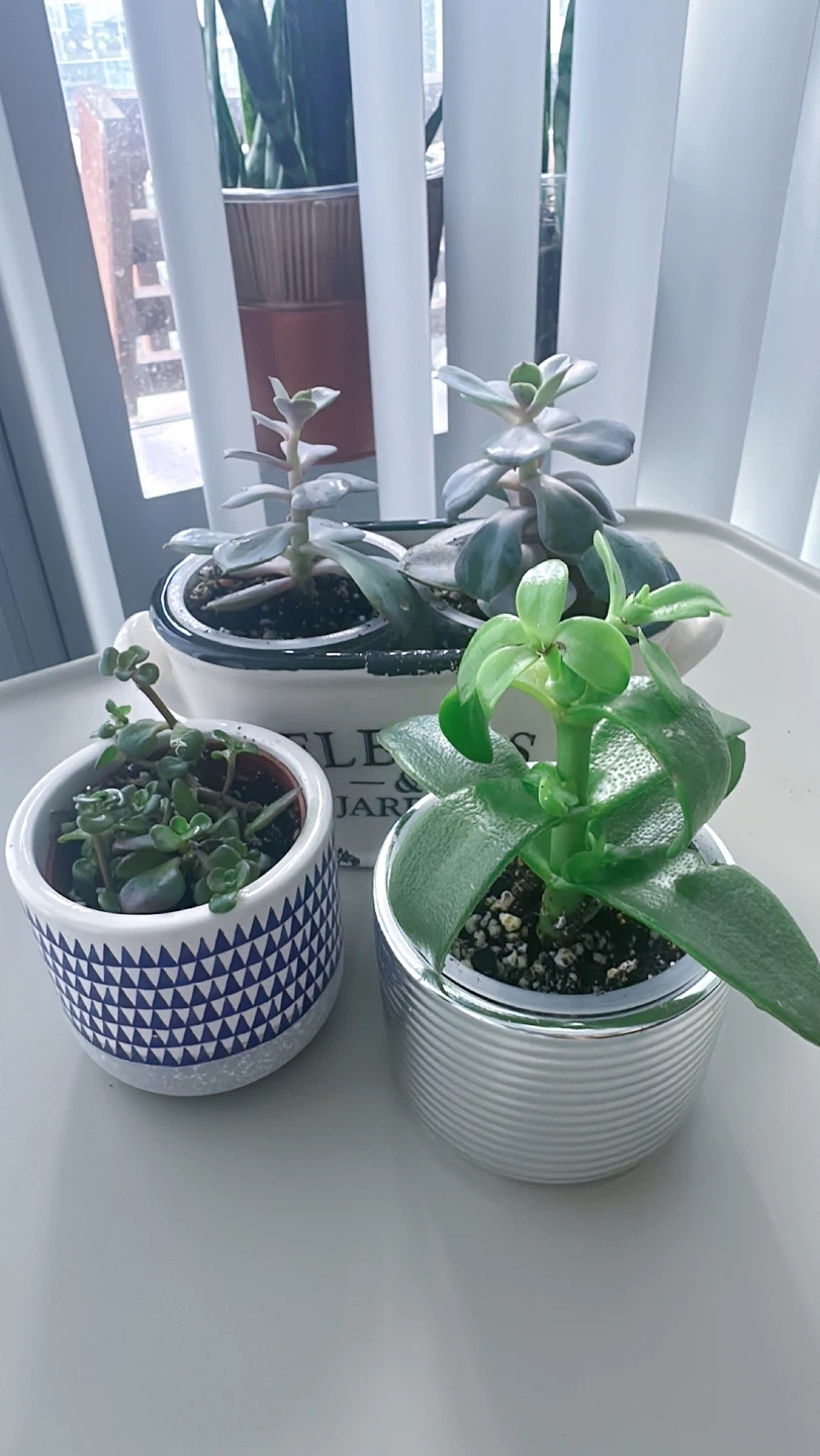 A few potted succulents looking for a new home! They would be a lovely addition to any room. They are easy to take care of and bring a touch of green indoors Selling all of them for $5