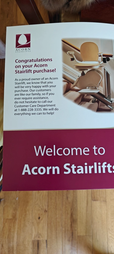 Acorn Stairlift used for less than 2 yrs for straight staircase 8 ft ceil rise paid almost $4000 asking $1000 easy to install have all documents