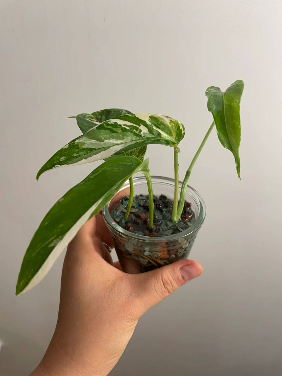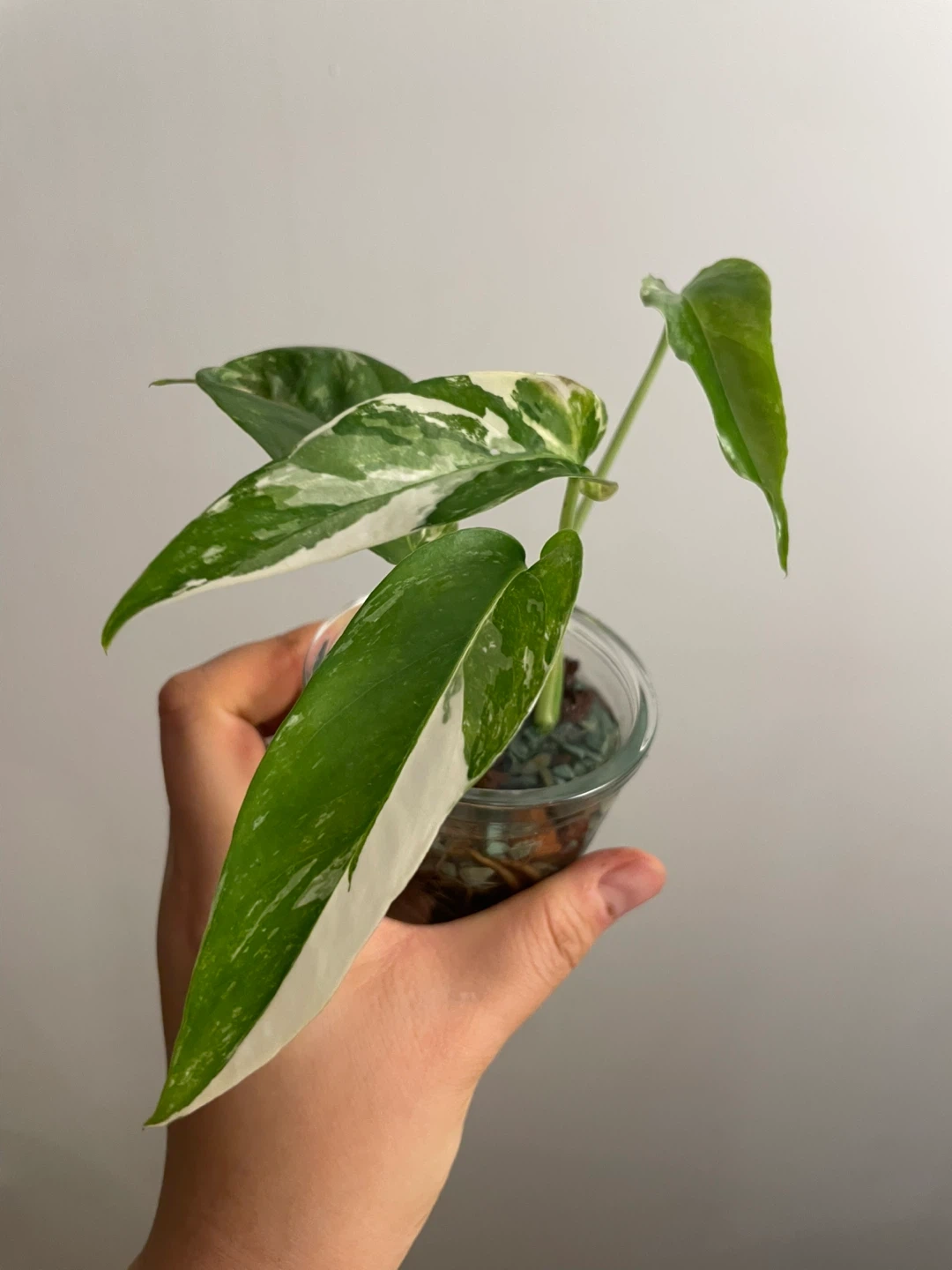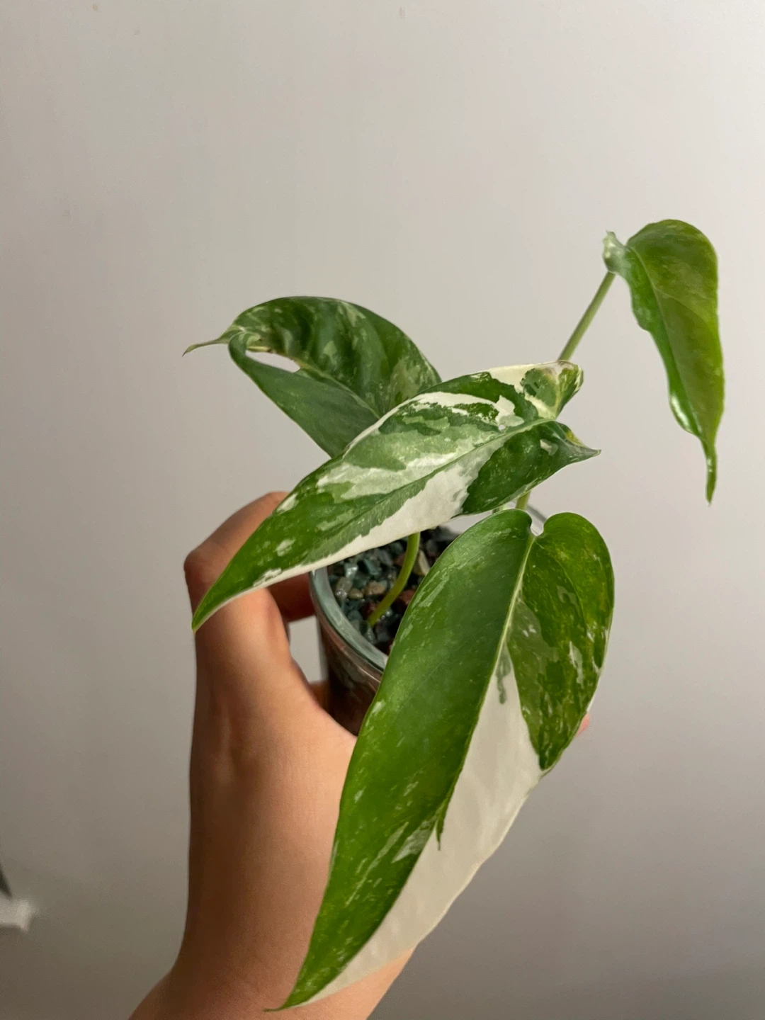 Selling a healthy Epipremnum Pinnatum Albo plant! It's currently potted in a clear pot, ready to brighten up your space with its lovely variegated leaves