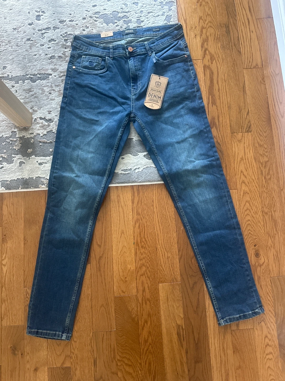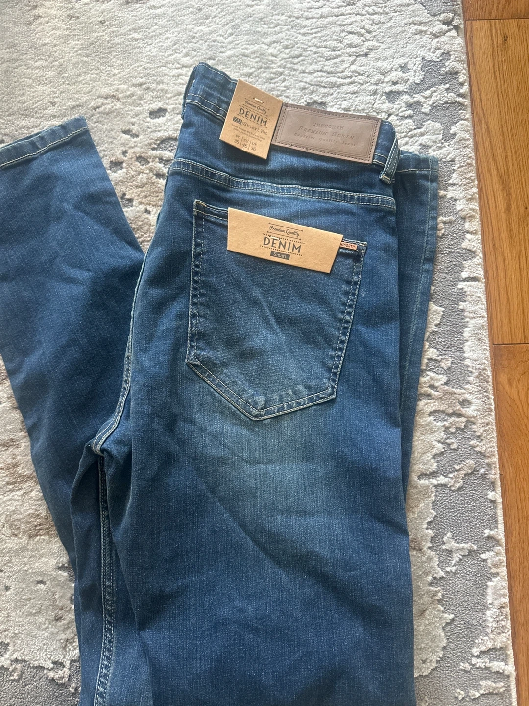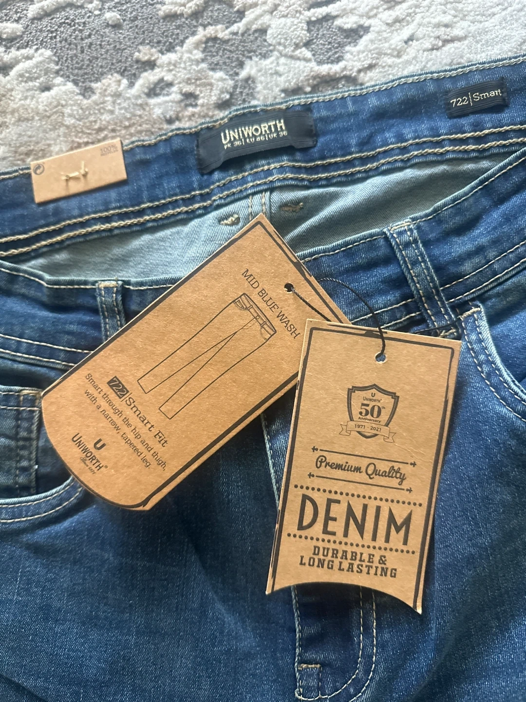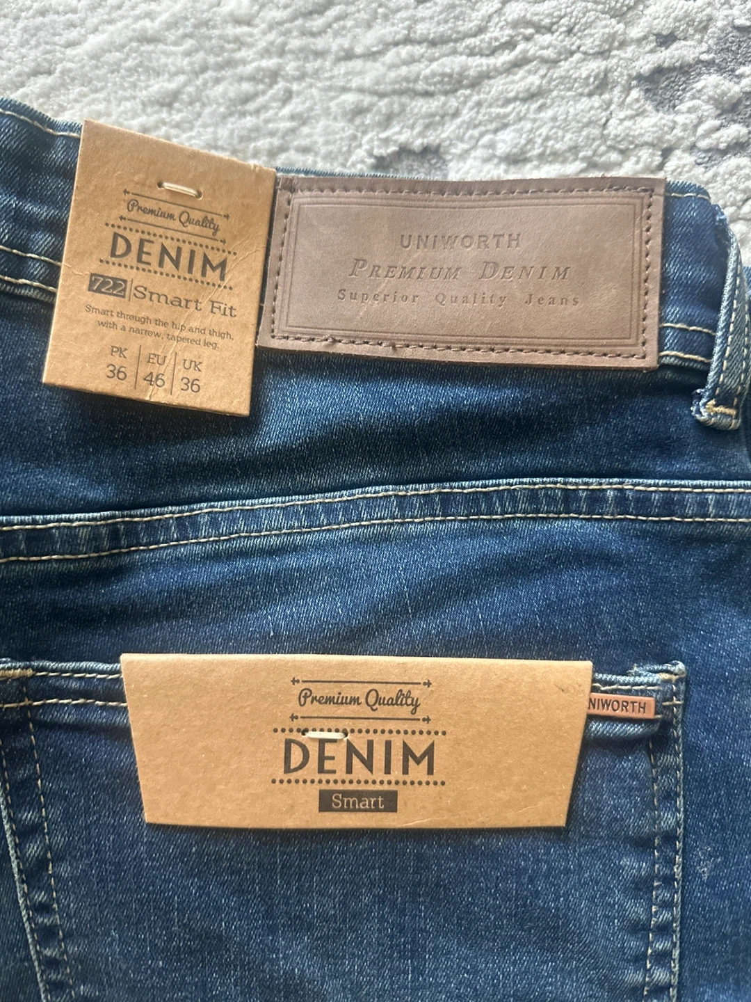 Selling a pair of Uniworht Premium Denim jeans in size 36. These are '722 Smart Fit' jeans, designed to be smart through the hip and thigh with a narrow, tapered leg. The wash is a nice mid-blue colour. They are durable and long lasting!
