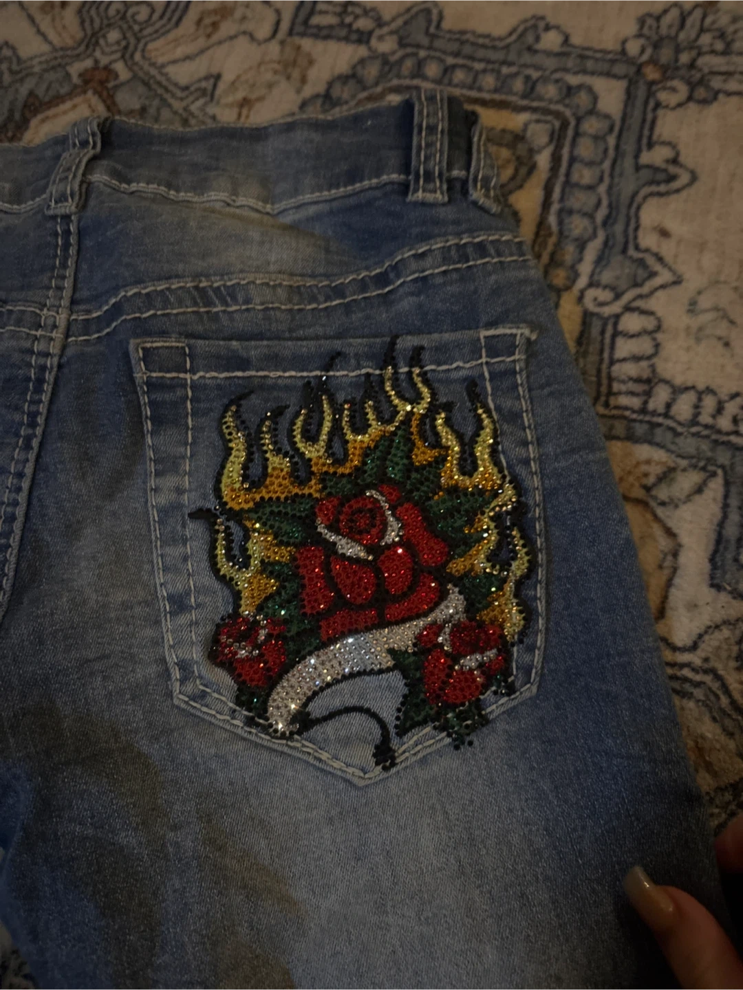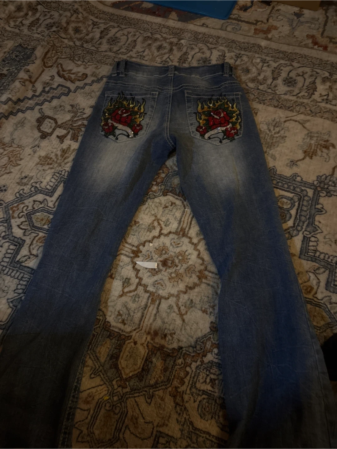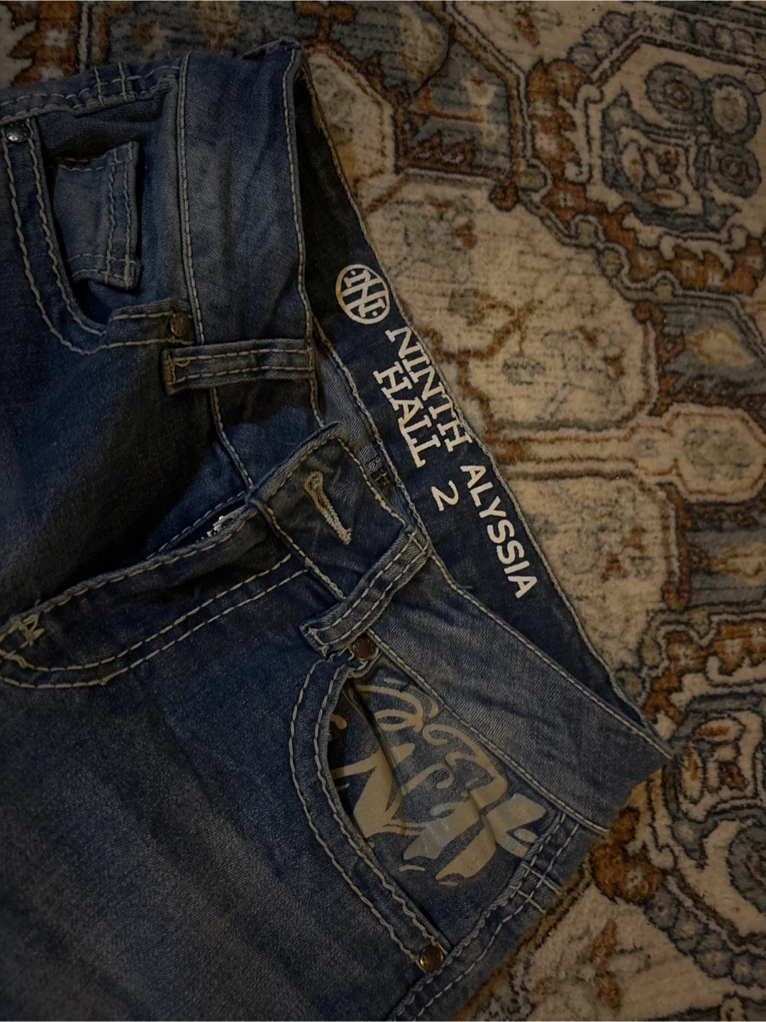 Selling a pair of Ninth Alyssia Hall 2 jeans. They feature a unique design on the back pockets. Great for adding a bit of flair to your wardrobe!
