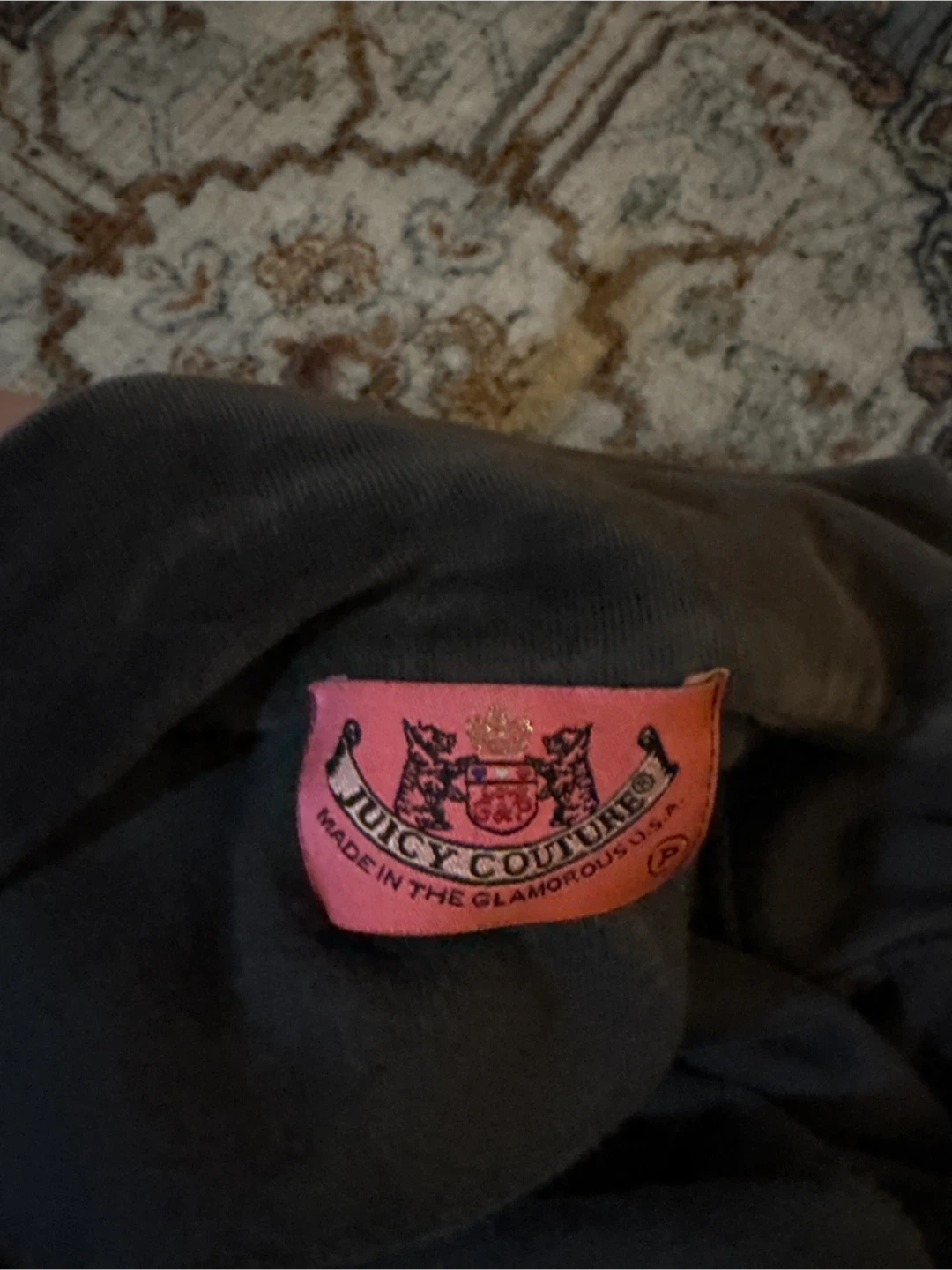 Cozy Juicy Couture velour jacket in a lovely dark grey colour! It's a size small and perfect for adding a touch of glam to your everyday look! Great for layering or just lounging around the house