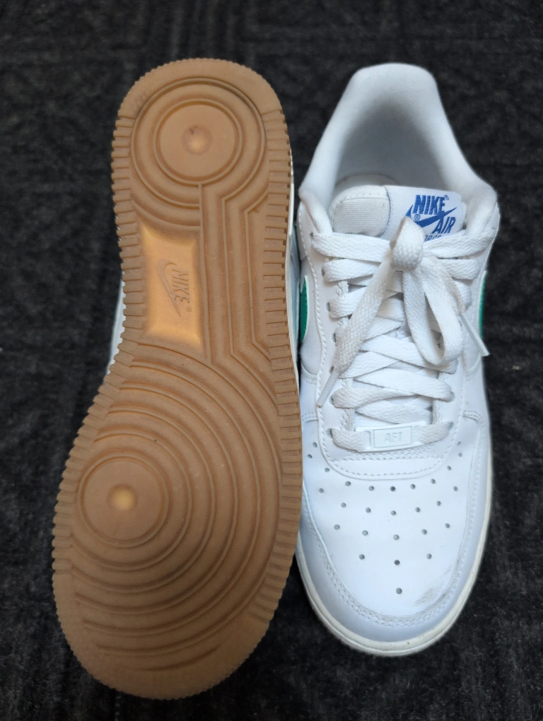 Selling a pair of Nike Air Force 1 Low sneakers in a clean white and green colourway! They are in good condition and ready for a new home. The classic design and comfortable fit make them perfect for everyday wear
