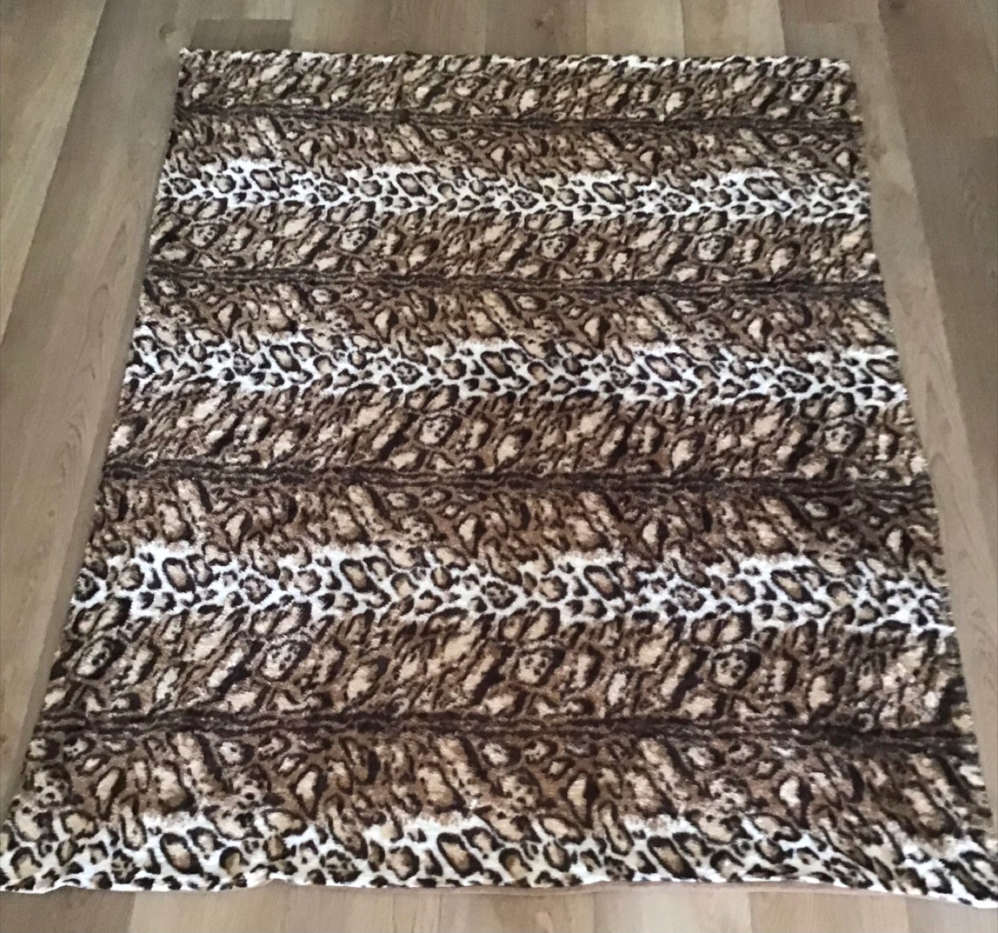 Selling a cozy leopard print throw blanket. It's in great condition and would be perfect for adding a touch of style to your living room or bedroom. The material is soft and plush, making it ideal for snuggling up on the couch during those chilly evenings. It has a brown fleece backing. As is. Must go now More info in last photo $10.00 exact cash only Roughly 59 inches by 4 feet