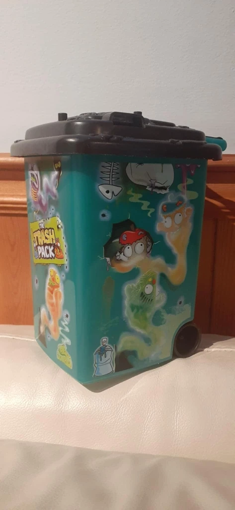 Selling a The Trash Pack Wheelie Bin toy! It's in great condition and ready for a new home. It has a green bin with a black lid and wheels. Selling the trash bin only, the doll is not included.