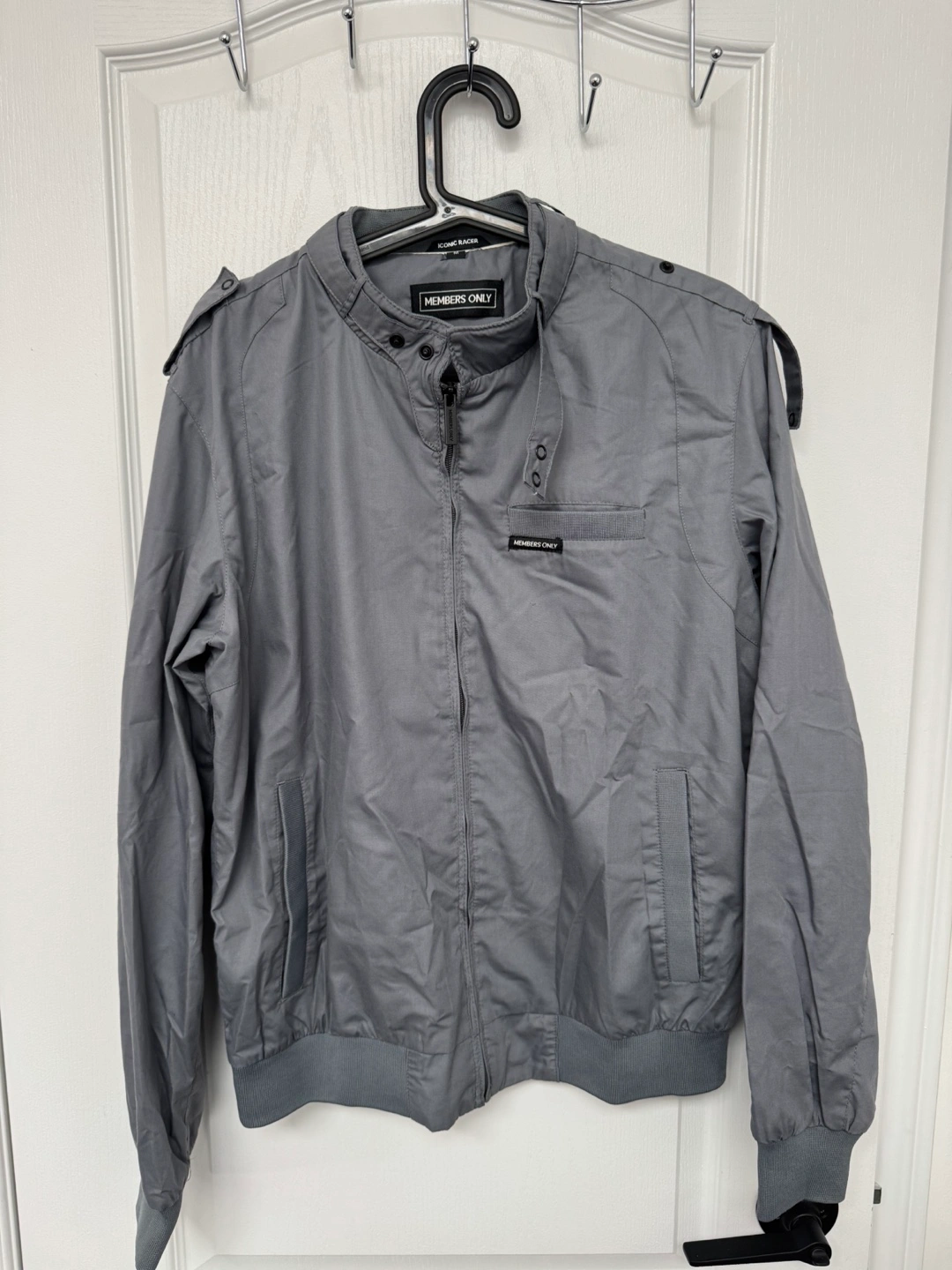 Classic Members Only Iconic Racer jacket in a stylish grey colour. It's in great shape and ready for a new home. Perfect for adding a touch of retro cool to your wardrobe!