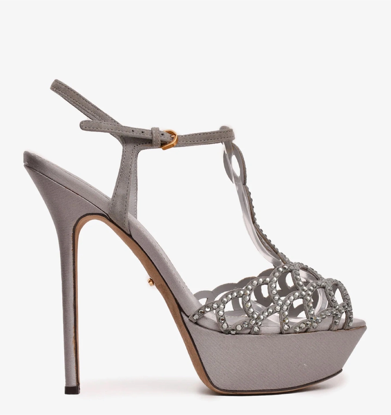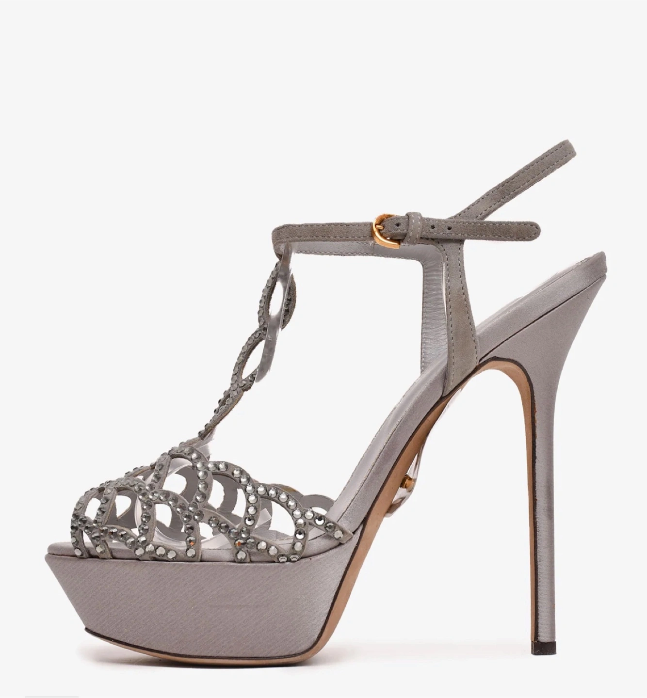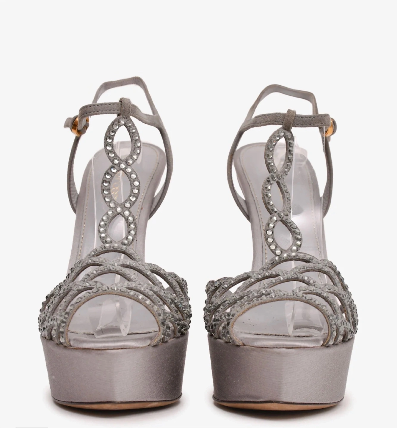 SERGIO ROSSI CRYSTAL EMBELLISHED PLATFORM HEELS SIZE 38.5