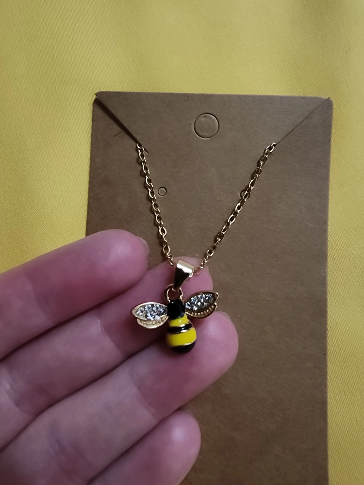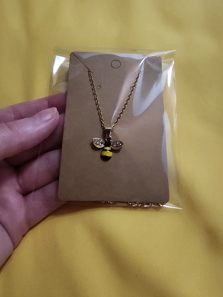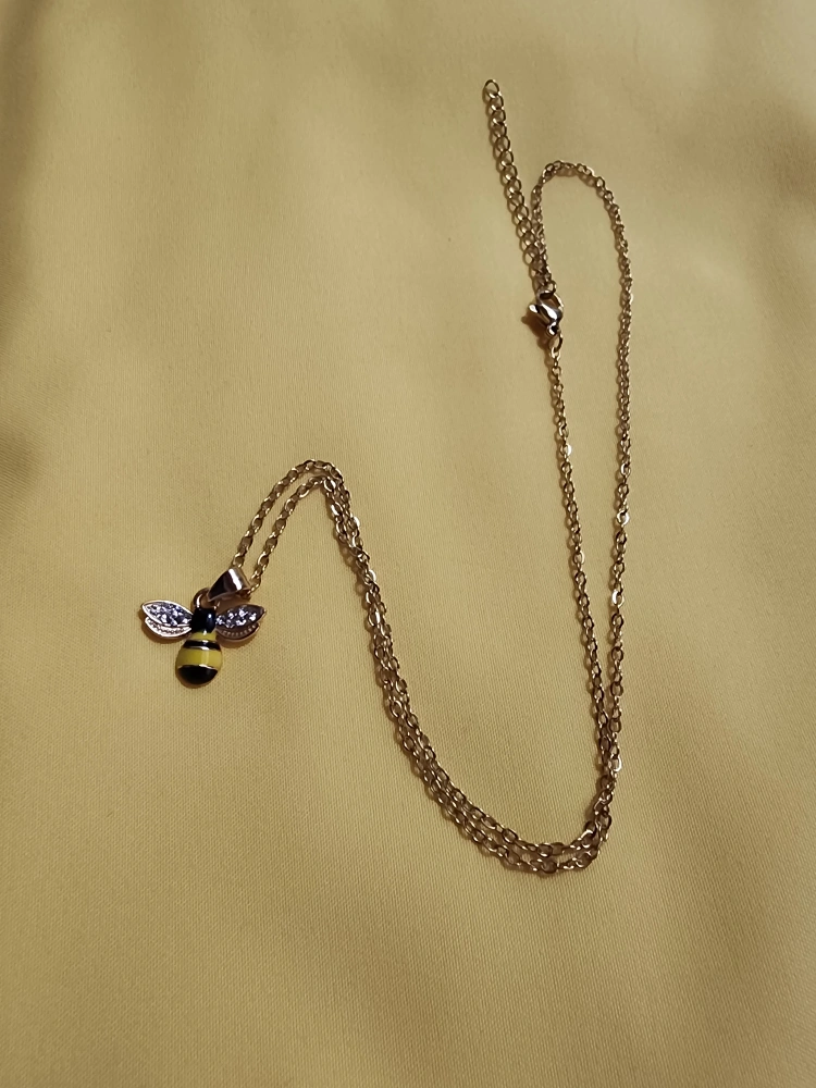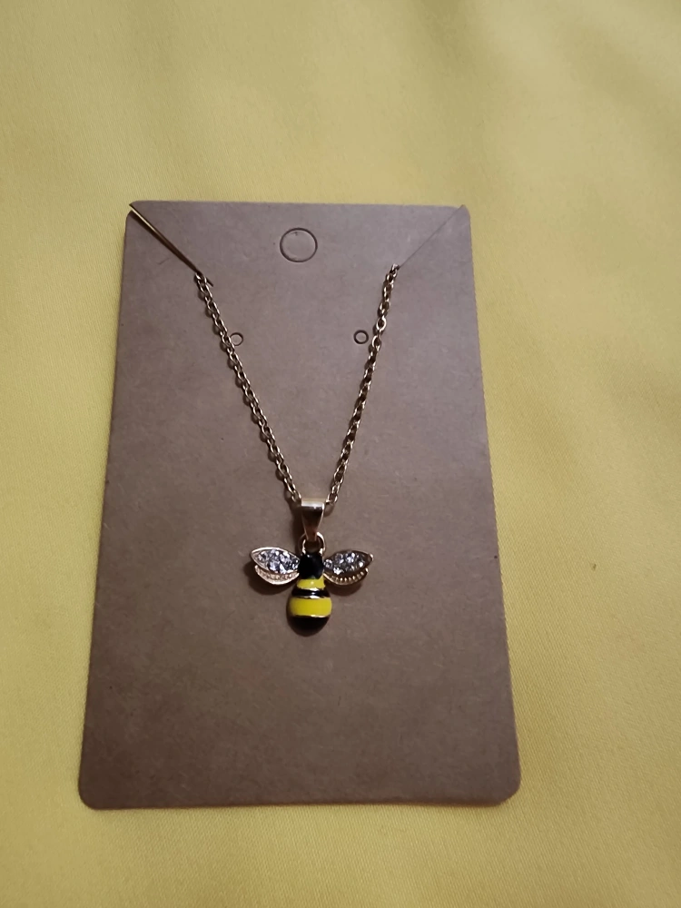 Cute bee pendant necklace with gold plated chain. Brand new and ready for its new home! This would make a great gift for any bee lover. Pick up in Shaganappi sw.