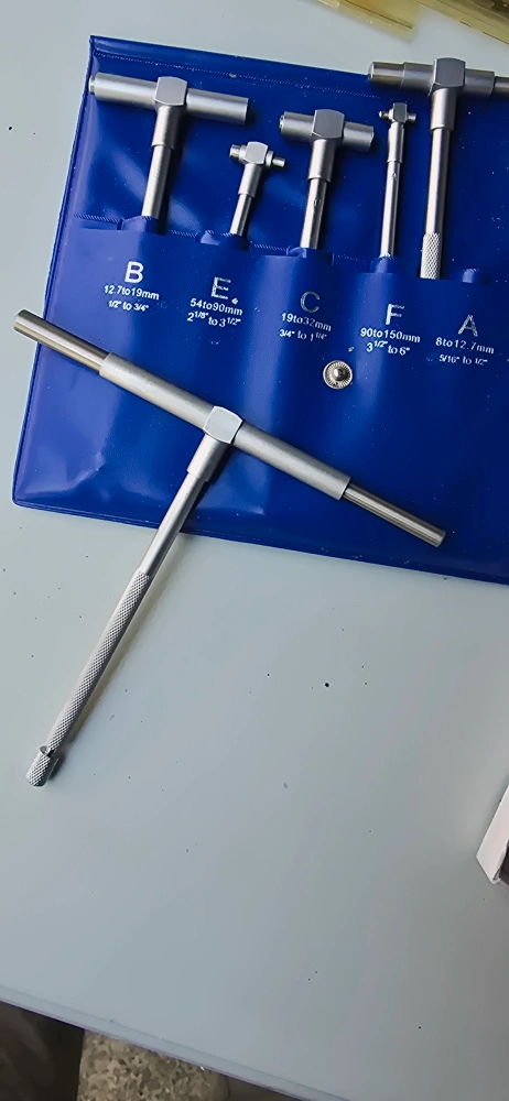 Selling a set of bore gauges. They come in a range of sizes to measure different hole diameters. The sizes included are: - 12.7 to 19mm (1/2" to 3/4") - 54 to 90mm (2 1/8" to 3 1/2") - 19 to 32mm (3/4" to 1 1/4") - 90 to 150mm (3 1/2" to 6") - 8 to 12.7mm (5/16" to 1/2") Great for precision measurements!