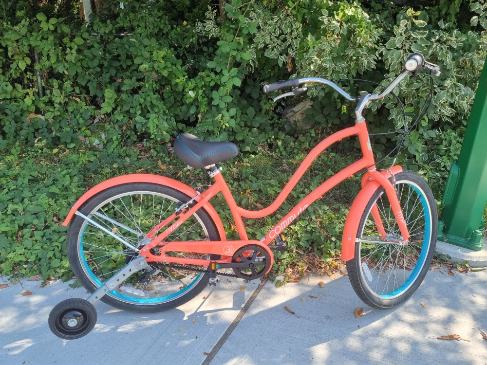 Selling a cute Hyde Commute ' bike in a lovely coral colour! It's perfect for learning to ride and comes with training wheels (you can buy without the training wheels price negotiable.