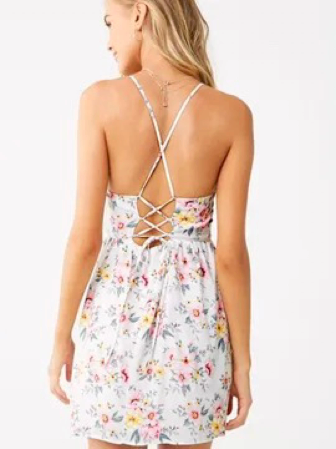 Very pretty summer dress with cute open Back. It is size M but will fit also S because the back is adjustable as you need. New with tags. Forever21 from 2019 year.