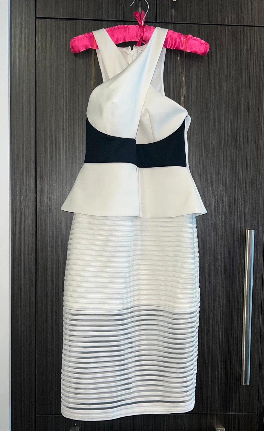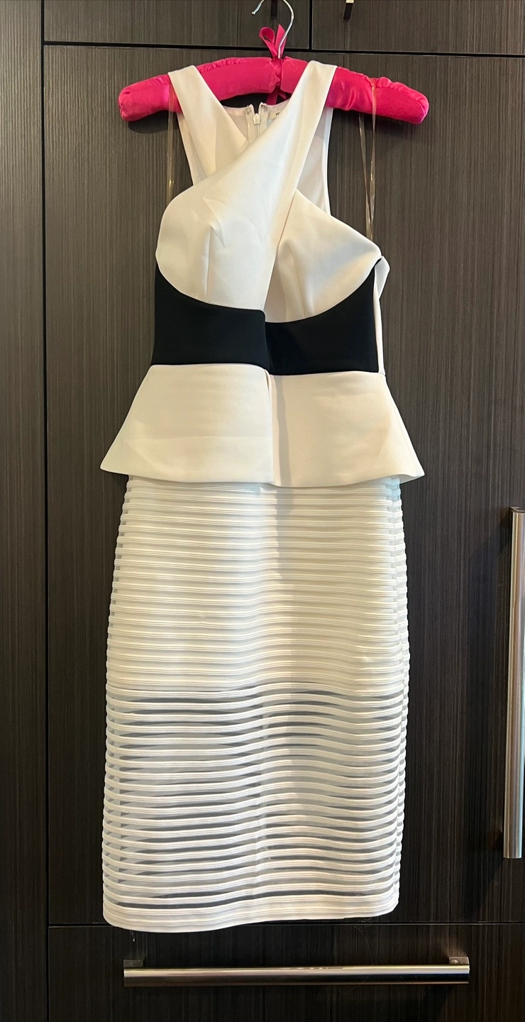Selling a stylish Mustard Seed dress in size medium! It features a unique design with a white and black colour scheme. The dress is in great condition and ready for a new home