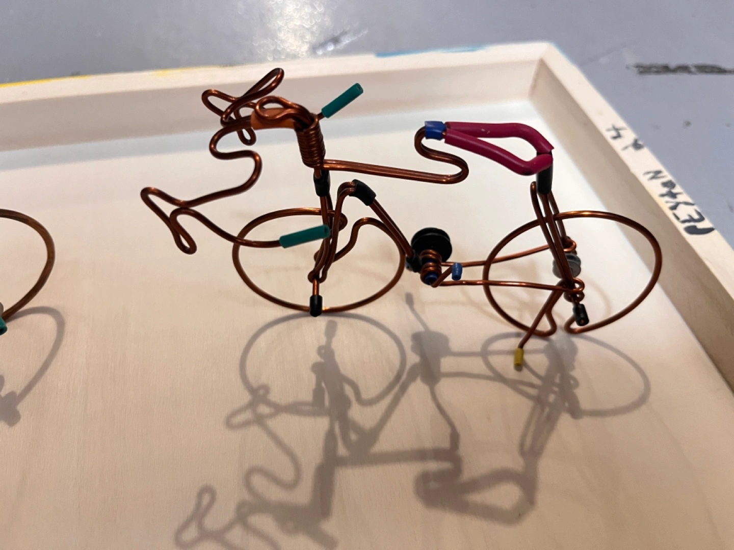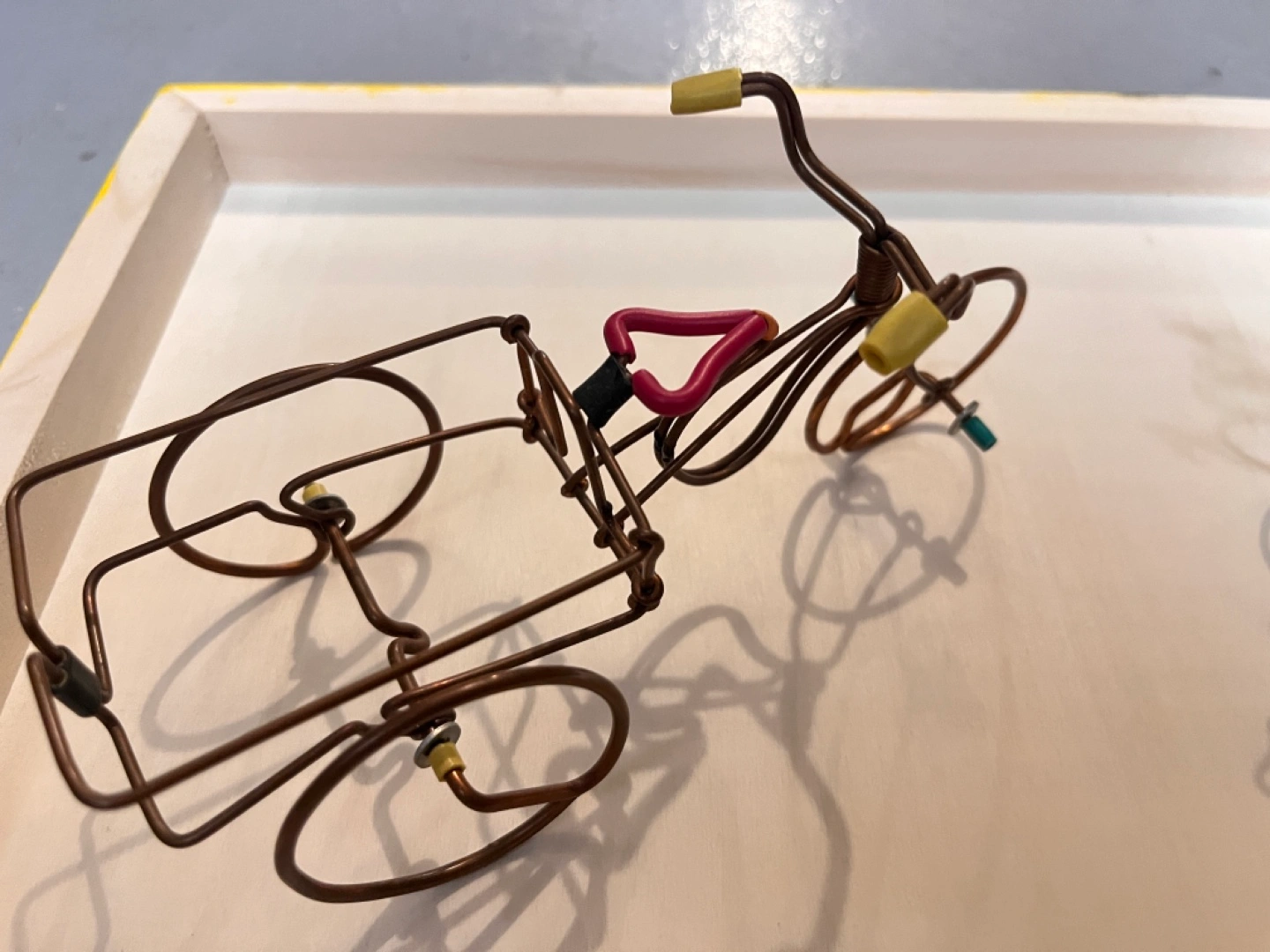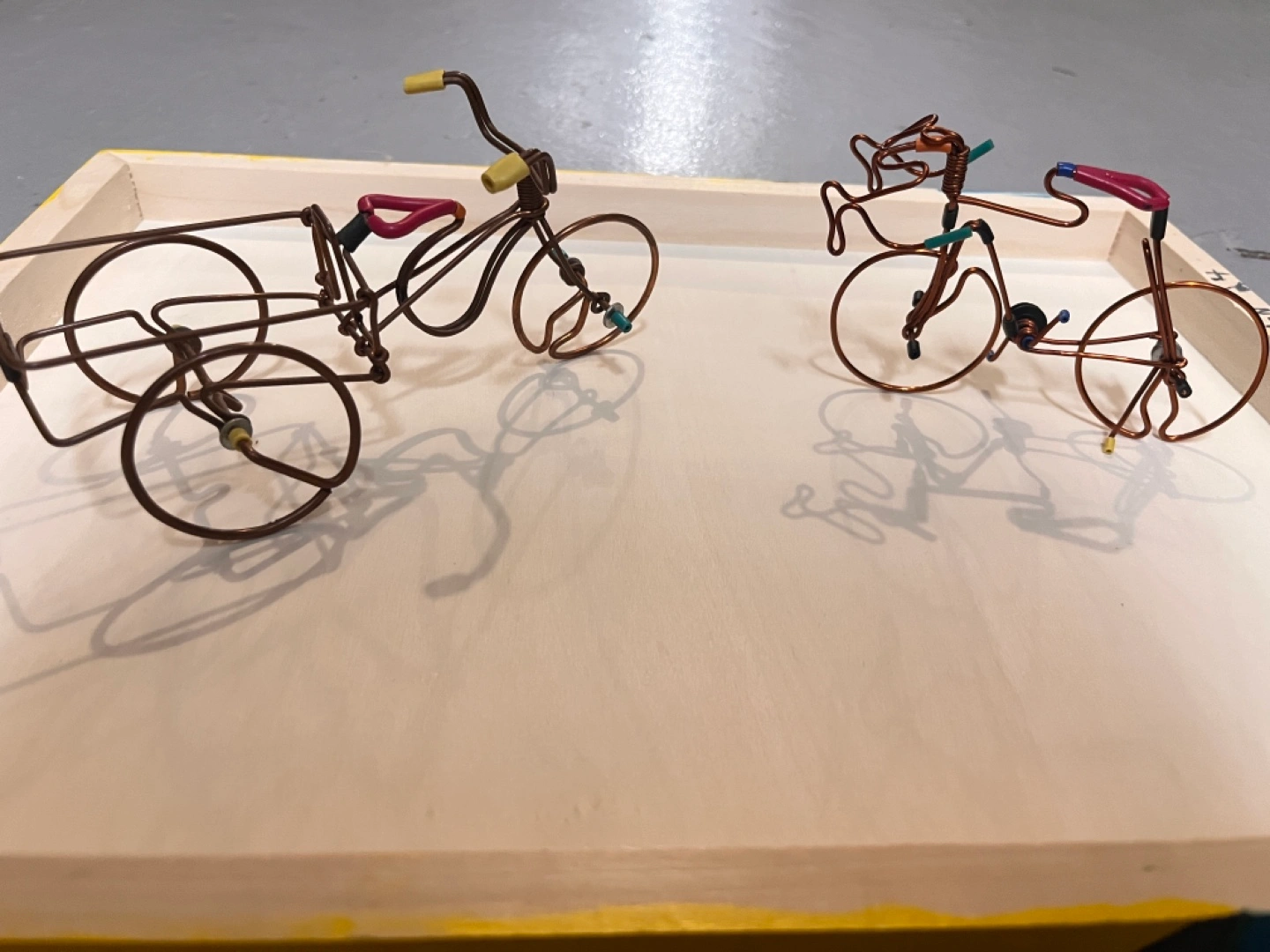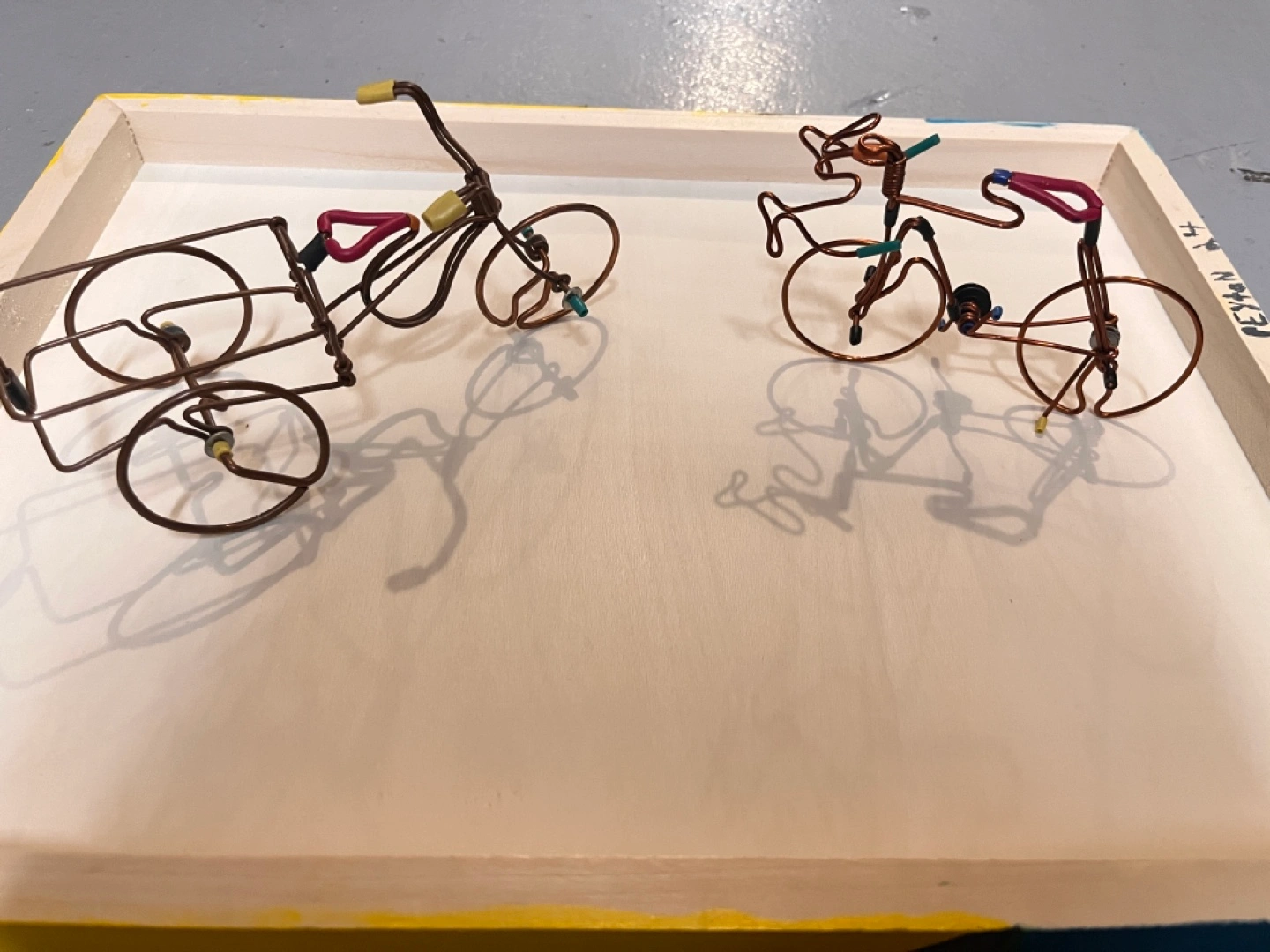Selling a set of handmade wire bicycle sculptures. These unique pieces would be a great addition to any art collection or a quirky decor item for your home. The set includes two different bicycle designs, each carefully crafted with intricate details. They're in excellent condition and ready to find a new home!