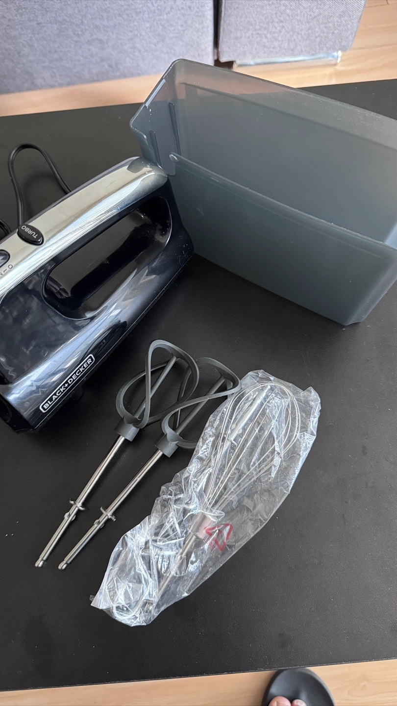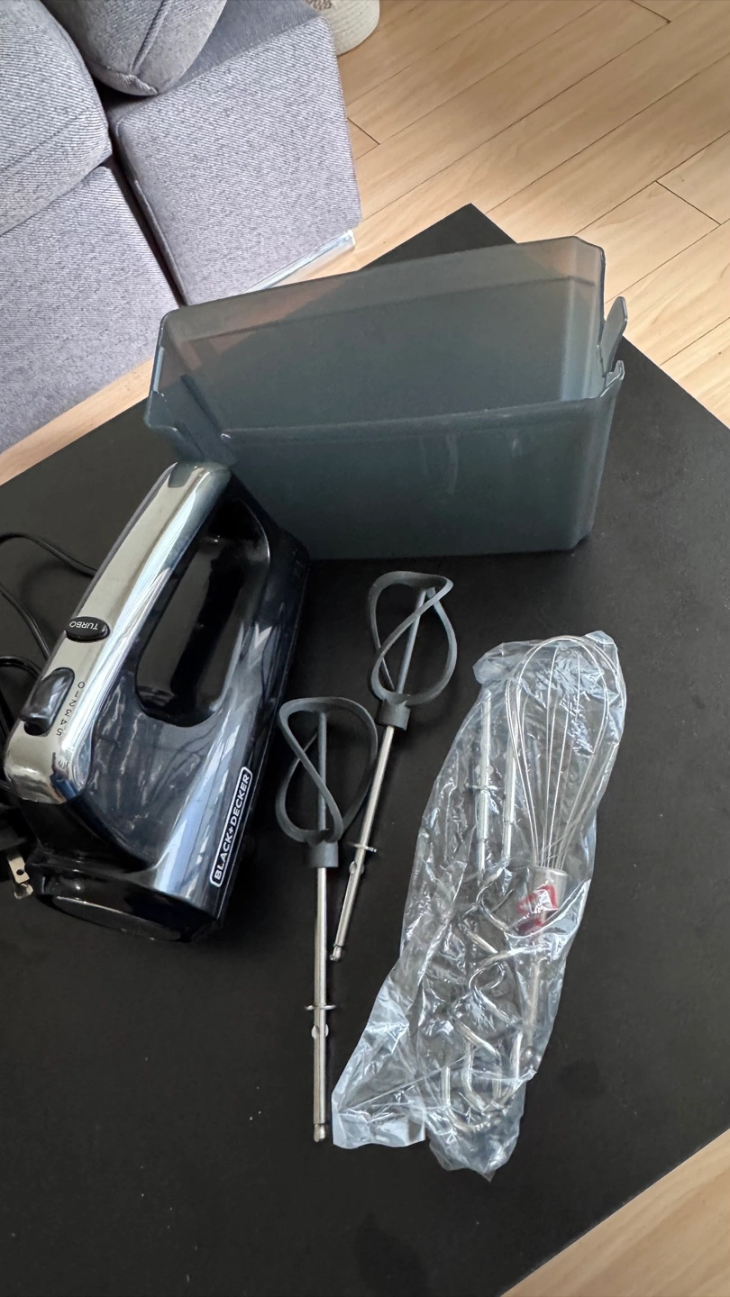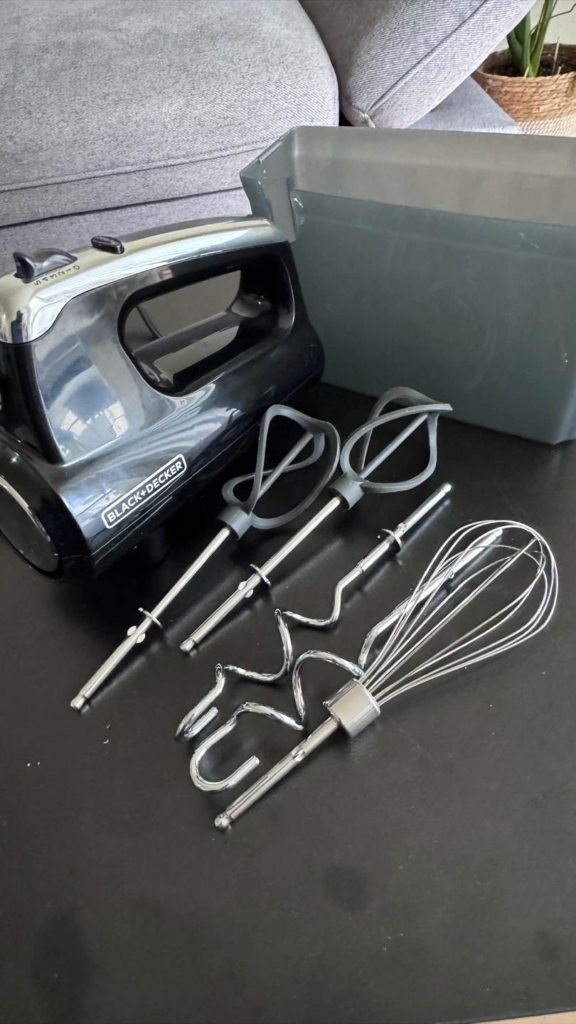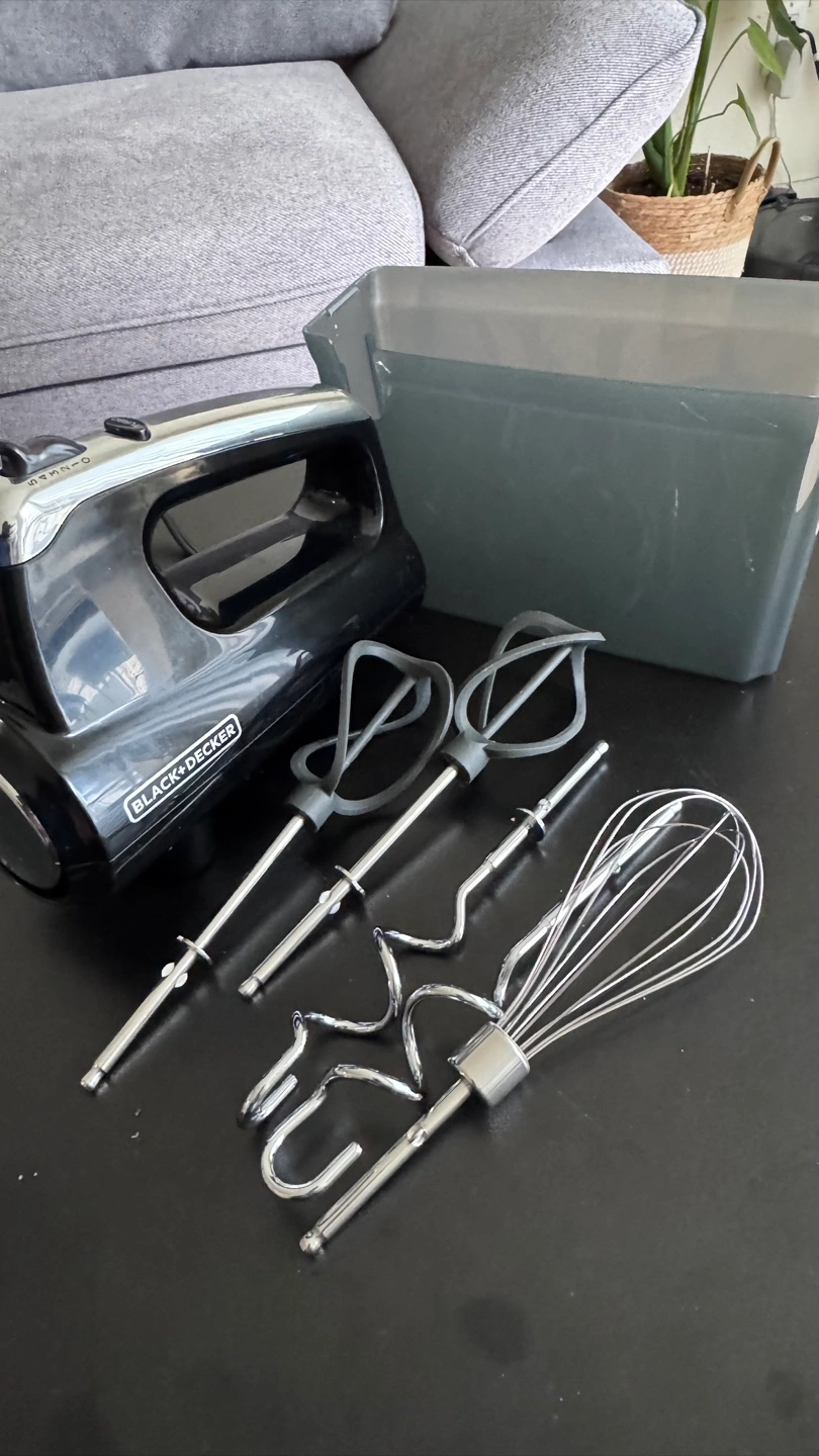 Selling a Black+Decker hand mixer, only used twice. perfect for all your baking needs! It comes with various attachments, including beaters and a whisk. Also included is a handy storage case to keep everything organized and together
