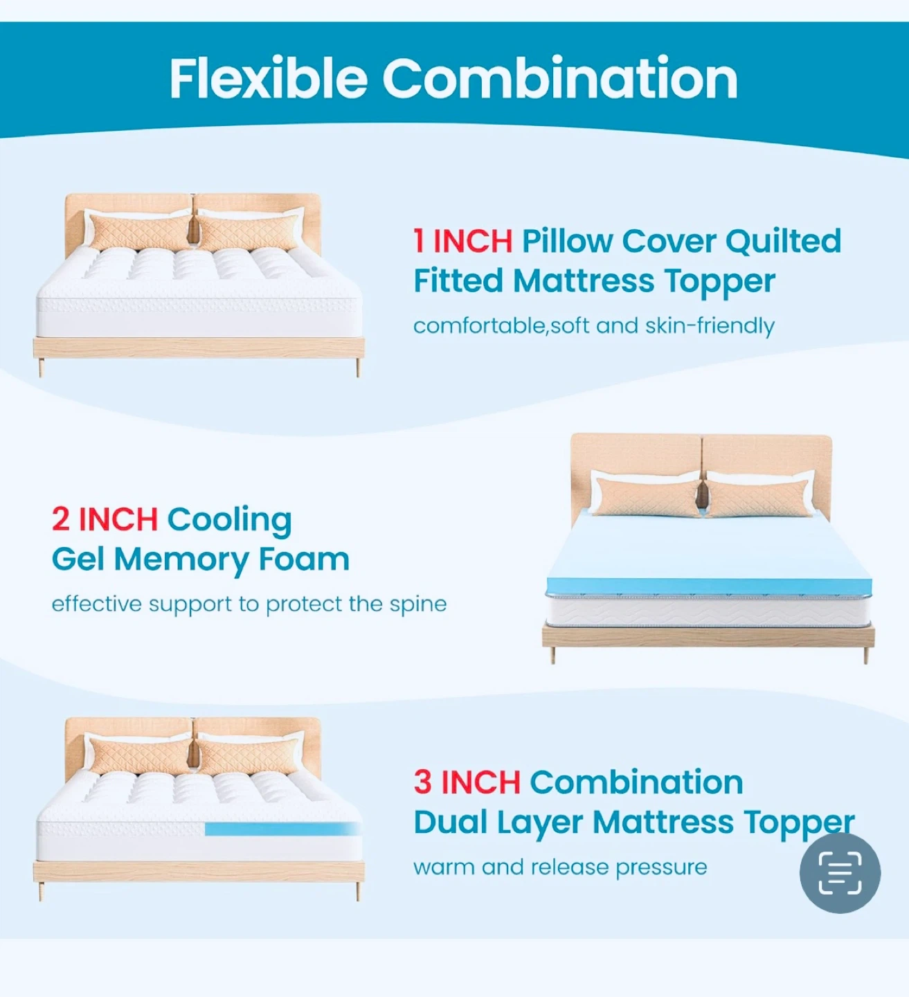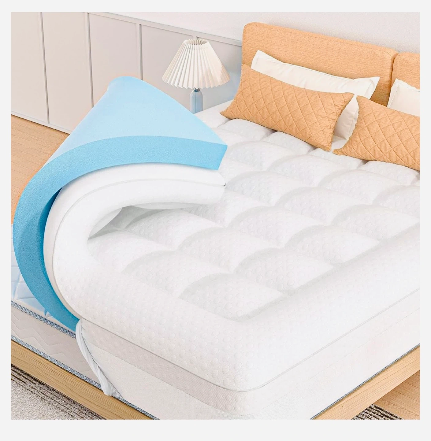 BRAND NEW IN BOX ⭐️【2-IN-1 CUSTOMIZABLE COMFORT】 Layer our 2" cooling gel memory foam + 1" quilted pillow top for plush pressure relief, or use separately to personalize your sleep experience. Perfect for couples with different firmness preferences! * ☁ 【Soft and Comfort Topper】 The extra-thick Pillow Top Mattress Topper is filled with high-quality polyester fiber, offering cloud-like comfort, ensuring skin-friendliness, breathability, and durability. * ❄【TEMPERATURE CONTROL】 This Cooling Gel-infused memory foam mattress topper actively draws heat away from your body and reducing night sweats. * 【UNIVERSAL 16-21" DEEP FIT】 360° elastic skirt grips mattresses securely like a second skin - no more slipping or bunching! Machine washable cover resists allergens & odors (cold gentle cycle + low heat dry). * 【PRO TIPS】 Your topper arrives in eco-friendly vacuum packaging. The foam takes 48-72 hours to fully unfold, and higher temperatures (25℃) will quickly restore the memory foam