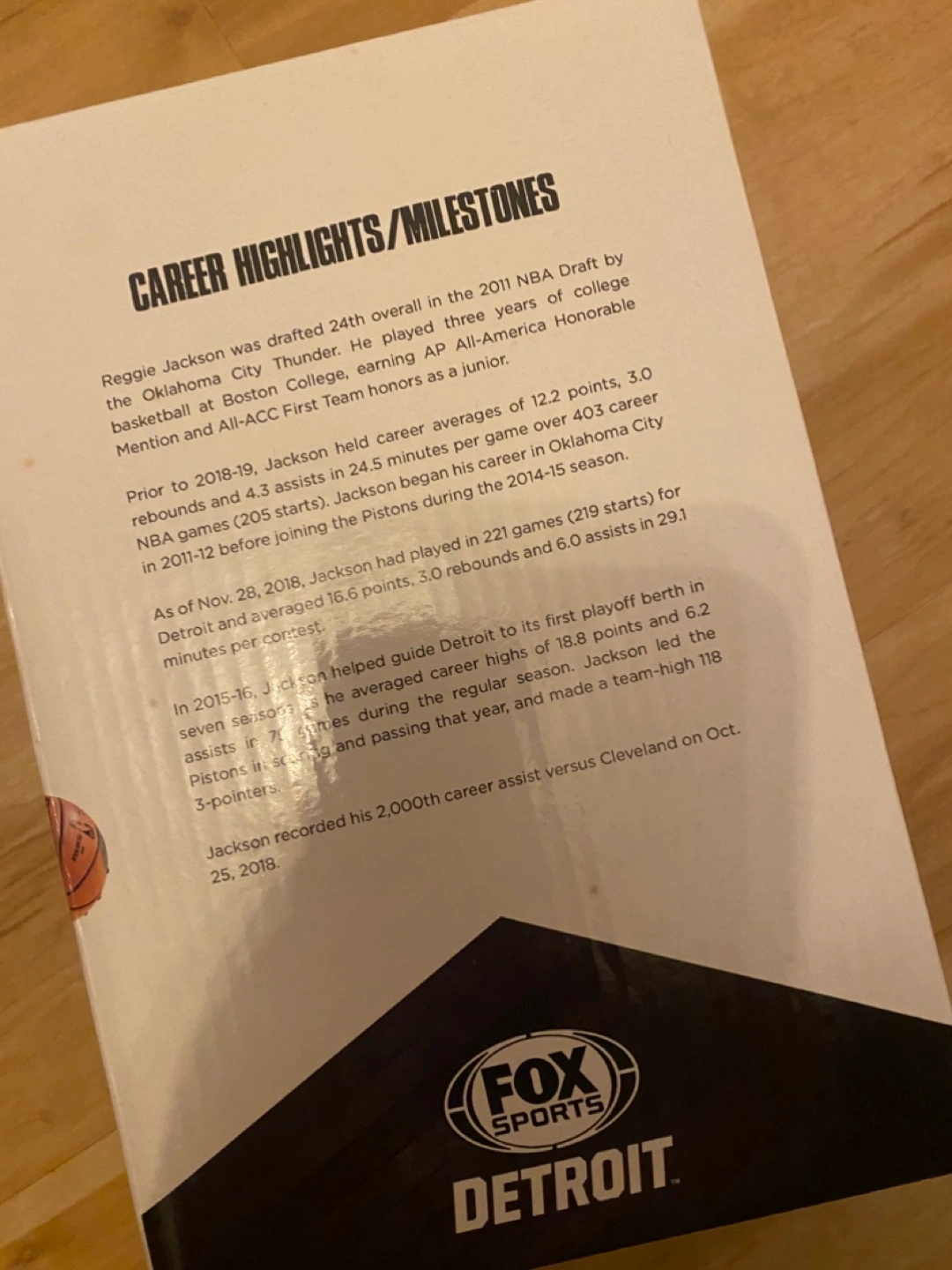 Selling a Reggie Jackson Detroit Pistons bobblehead. It comes with the original box and packaging. A great collectible for any Pistons fan!