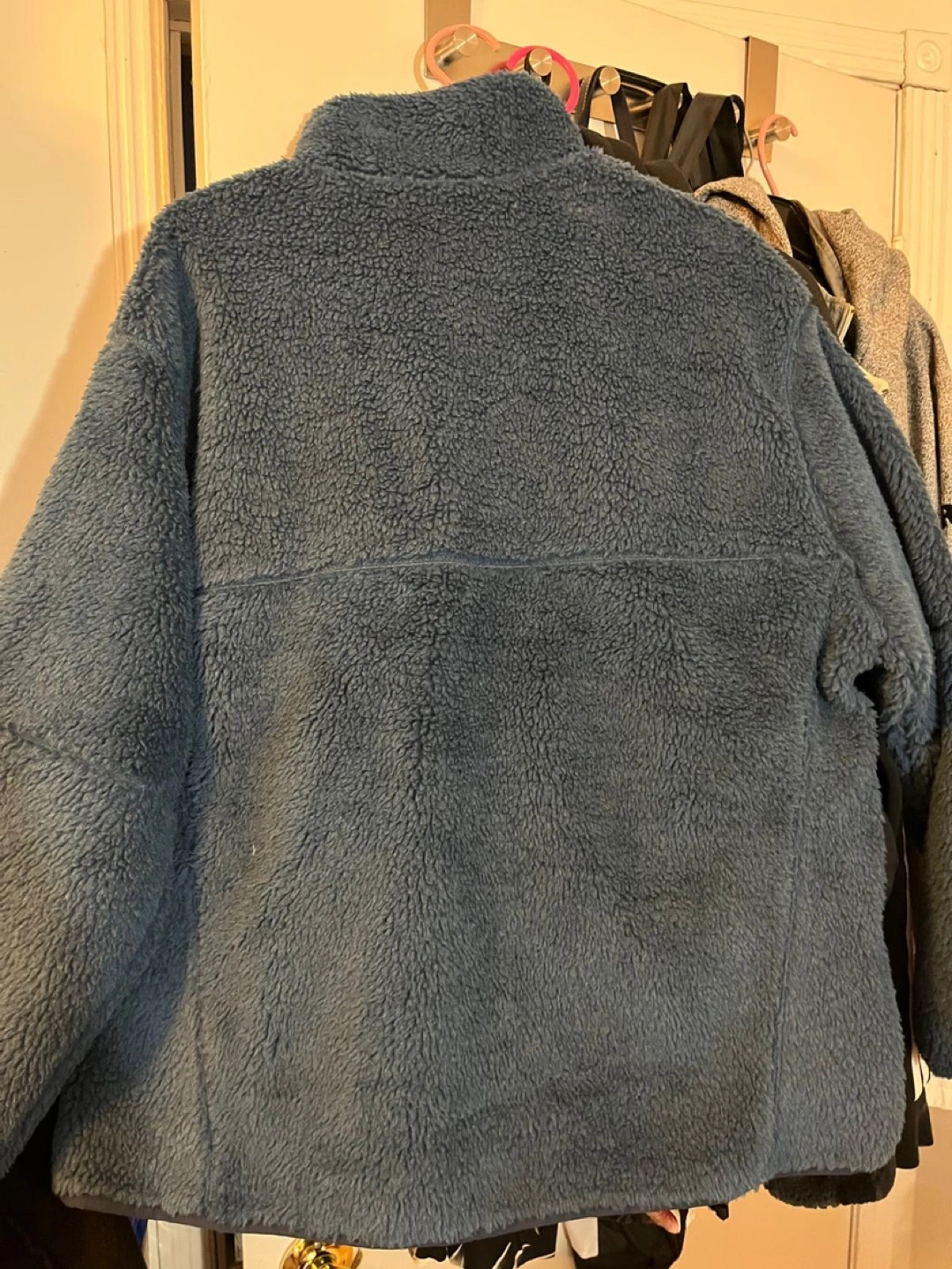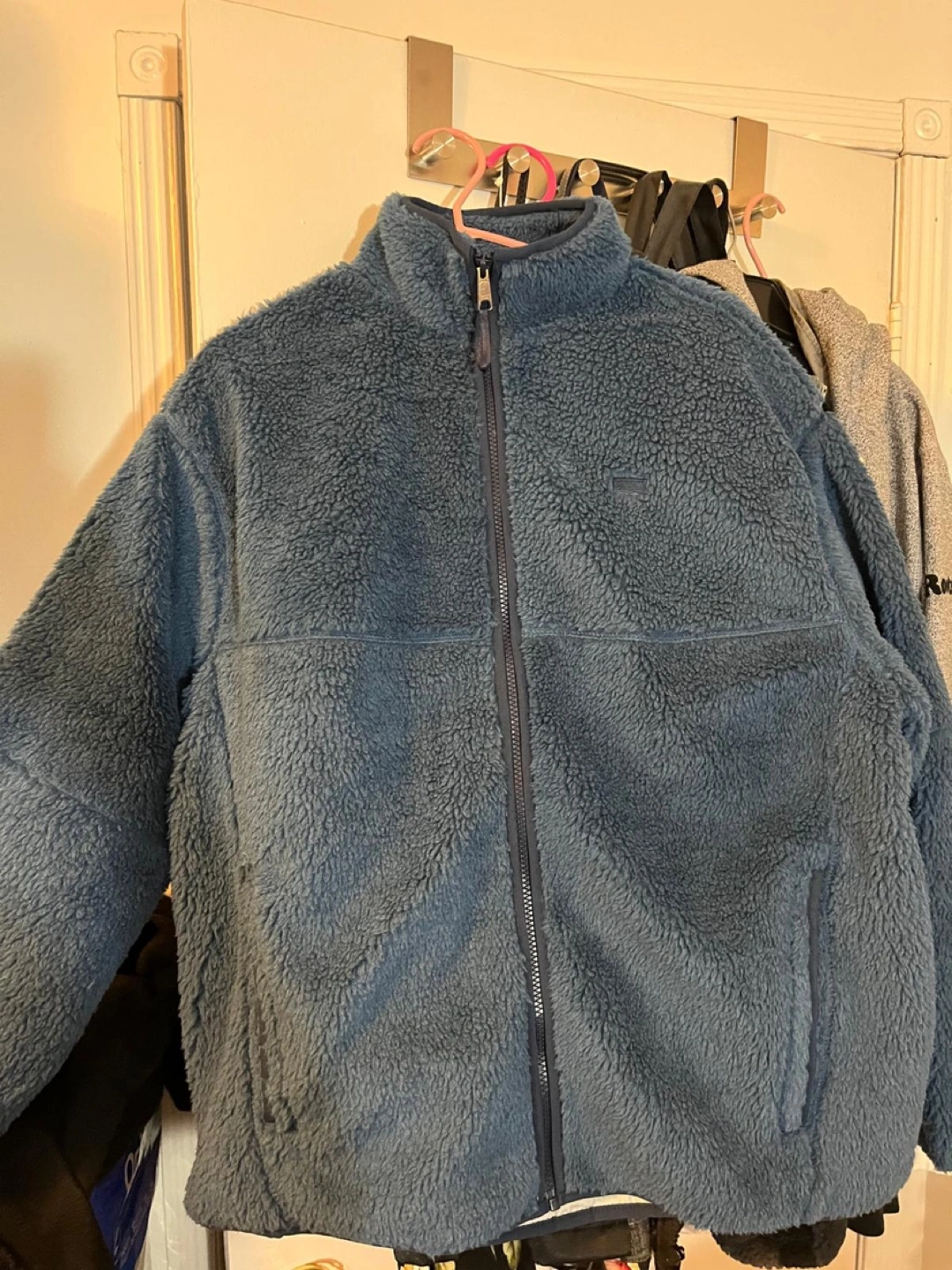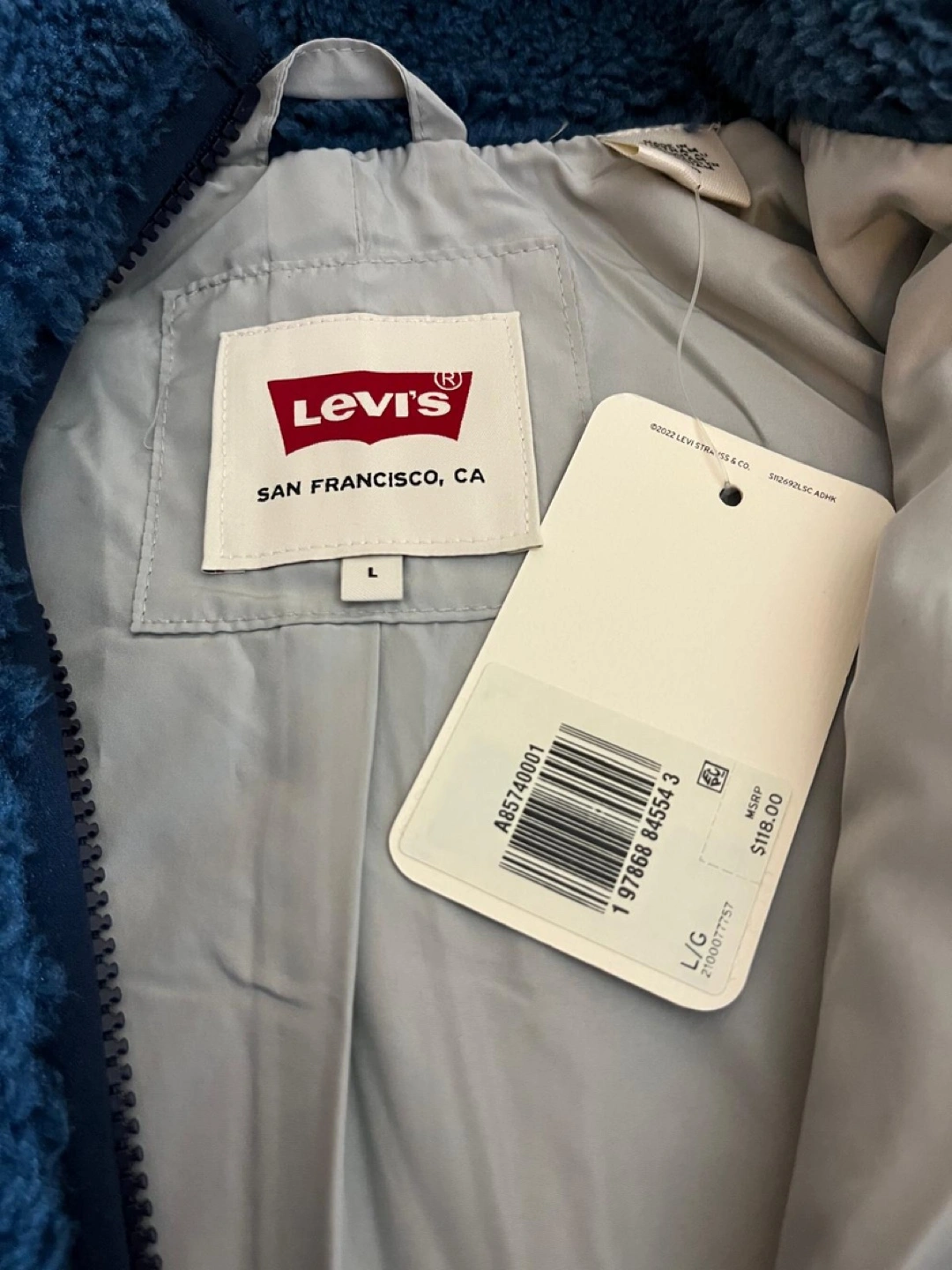 Cozy up with this Levi's Sherpa jacket in size L! It's a stylish and warm addition to any wardrobe. The jacket is made of soft, fuzzy sherpa material and features a full zip front. Originally bought for $118.00