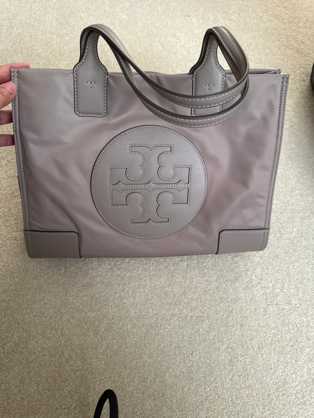 Selling a Tory Burch tote bag in great condition! It's a stylish and practical bag, perfect for everyday use. The bag is made of a combination of nylon and leather, giving it a sleek and durable design. It's a lovely neutral colour that will go with anything!