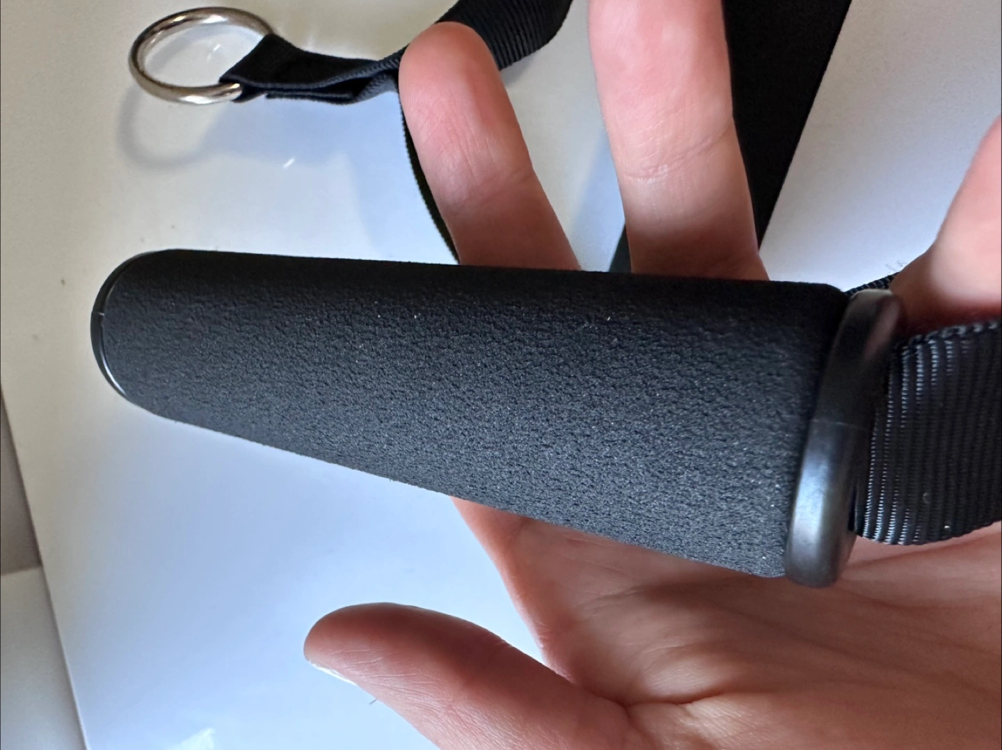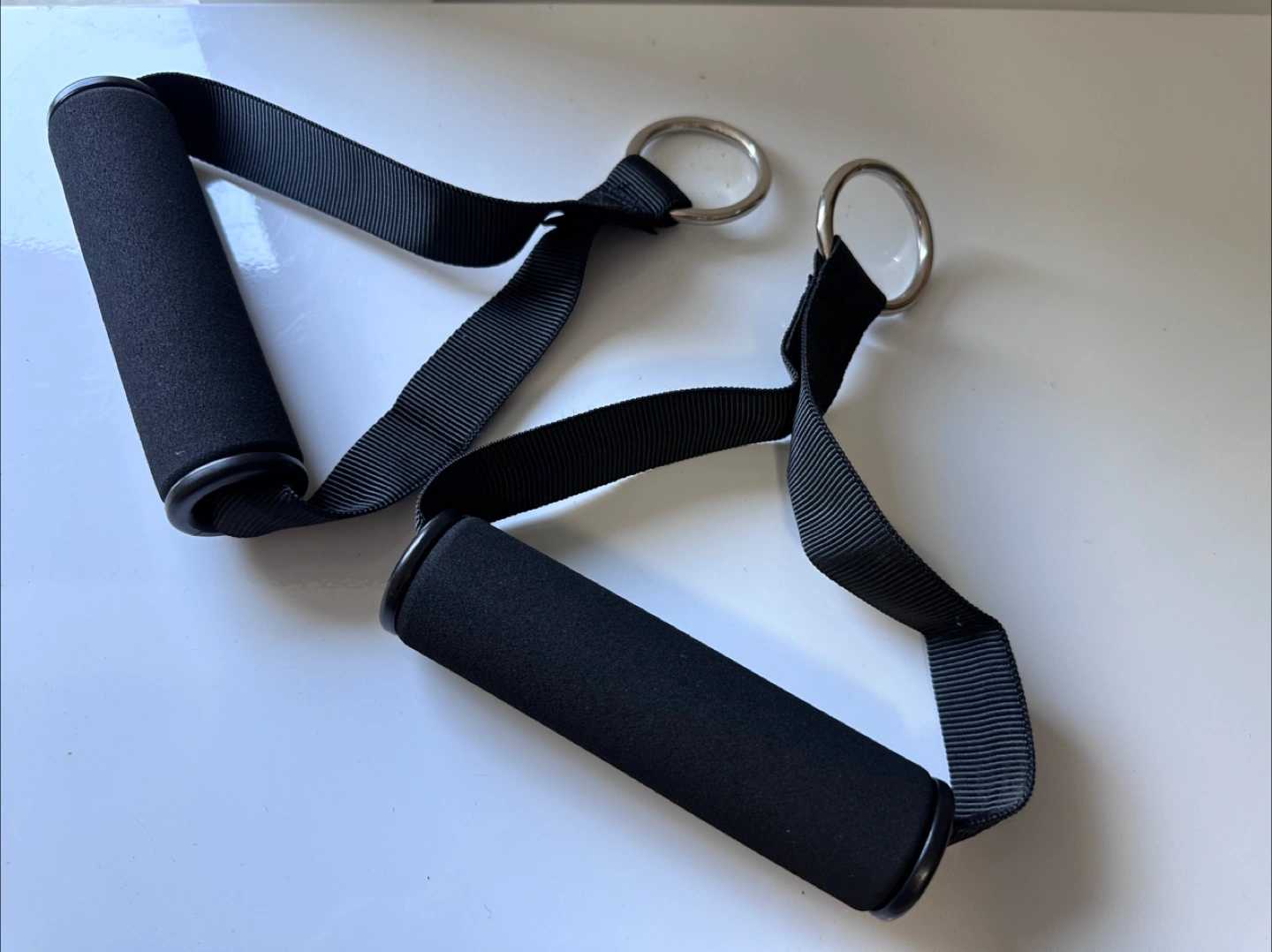 Selling a pair of resistance band handles in black. They're in great condition and ready for your workouts! The handles are comfortable to grip and the straps are sturdy.