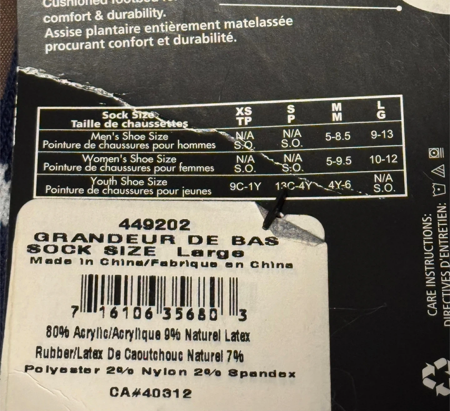 new, completely unworn. damage to the labelling, but the socks are completely intact and undamaged. cash only. sizing is shown in the third and fourth image.