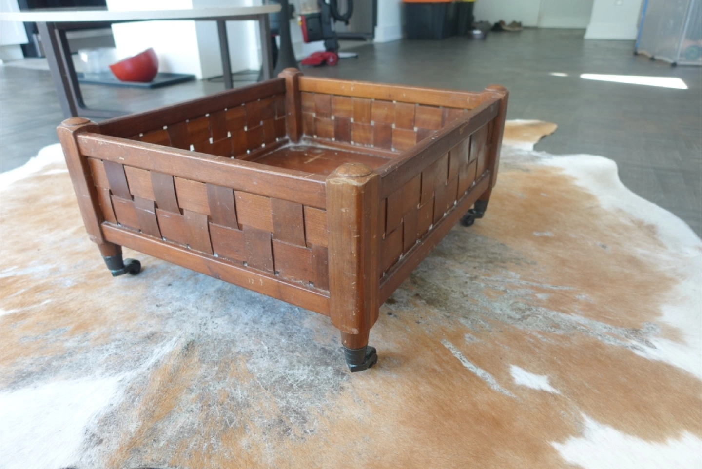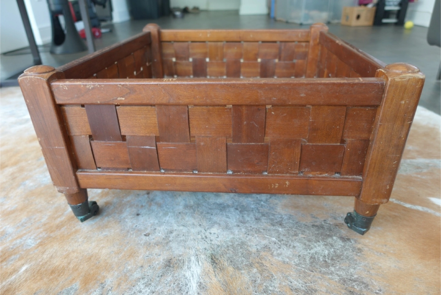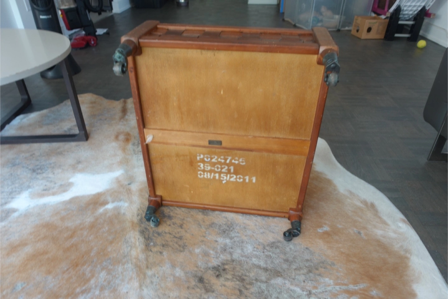 Selling a lovely Kincaid wooden storage box! It features a woven design and is on wheels, making it easy to move around. The manufacturing date is August 15, 2011.