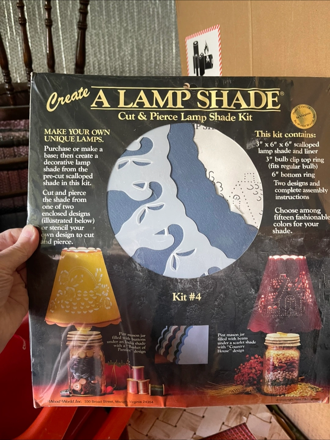 Get crafty with this Wood World 'Create A Lamp Shade' kit! This kit #4 includes everything you need to make your own unique lampshade. - 3" x 6" x 6" scalloped lamp shade and liner - 3" bulb clip top ring (fits regular bulb) - 6" bottom ring - Two designs and complete assembly instructions Choose among fifteen fashionable colours for your shade