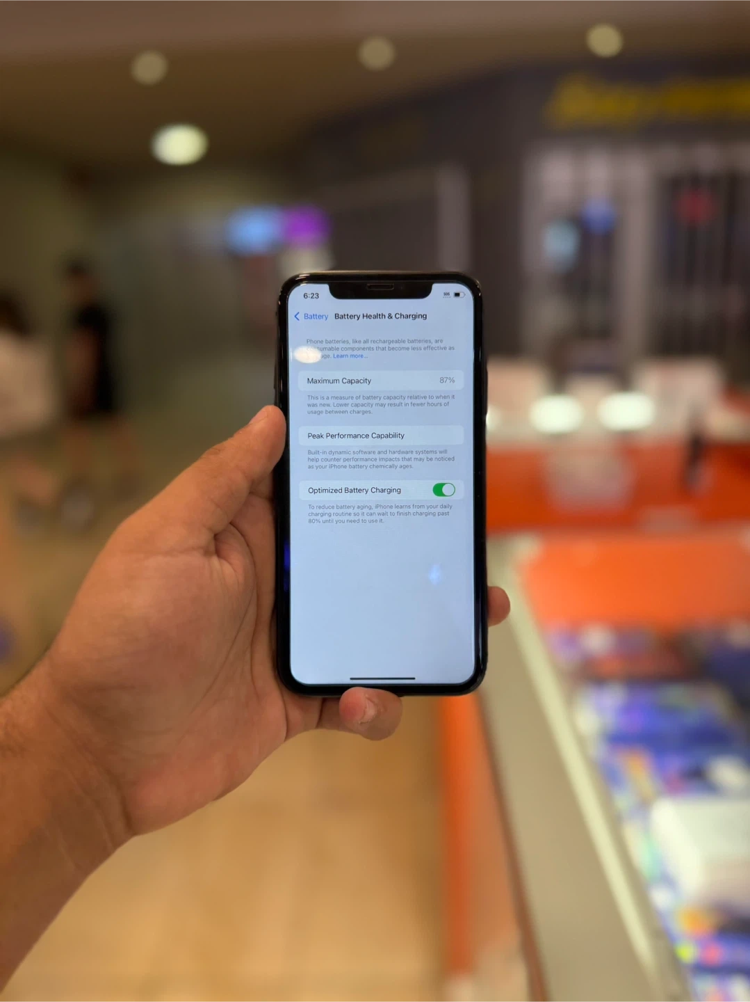 Selling my iPhone 11 in black. The battery health is at 87%. It's been well-maintained and is ready for a new owner