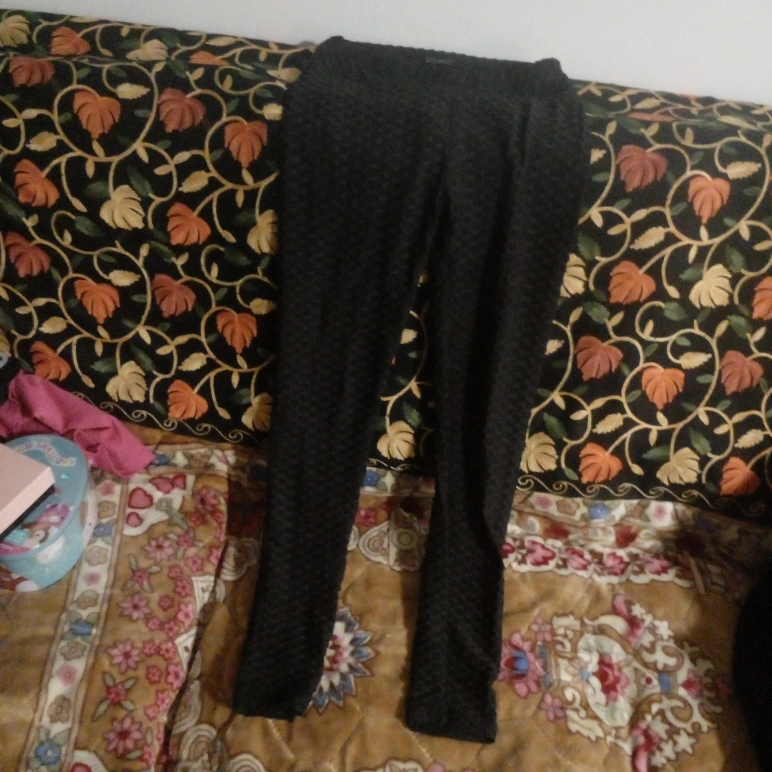 Selling a pair of black textured leggings. They're in good condition and ready for a new home! Perfect for everyday wearing or for the gym stretchy waste