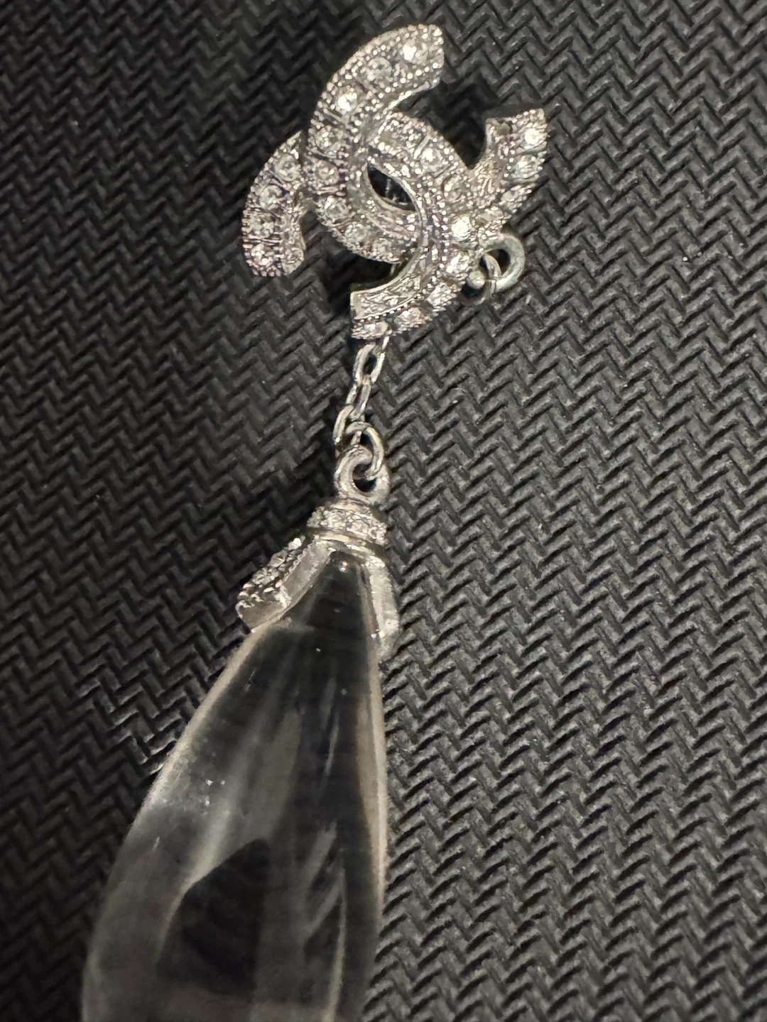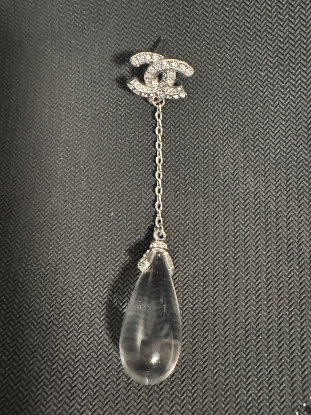 Selling a Chanel dangle drop earring. This earring features the iconic Chanel logo and a clear drop design. It's a stylish and elegant accessory to add to your collection!
