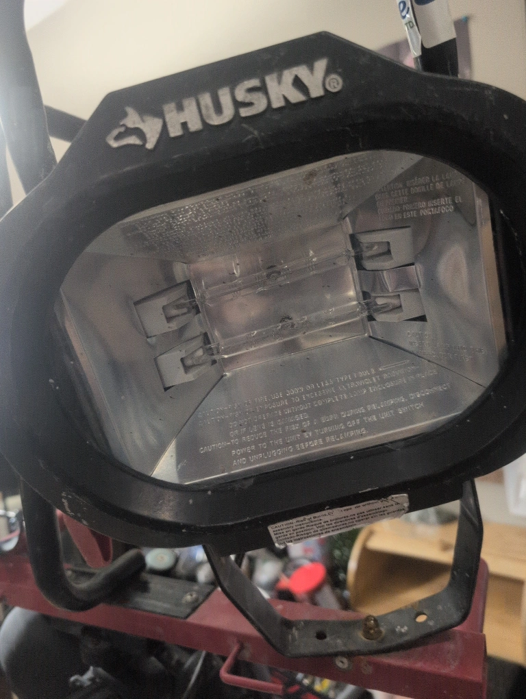 Selling a Husky work light with twin heads. It's in good condition and ready to brighten up your workspace! Great for projects around the house or on the job site