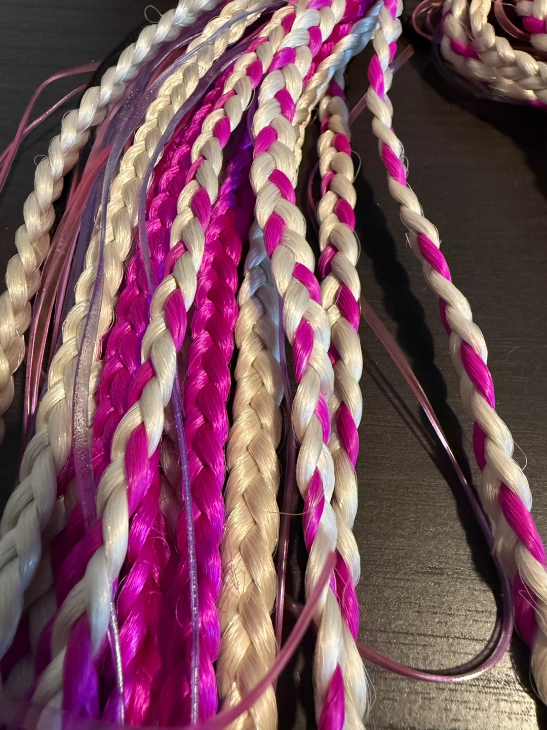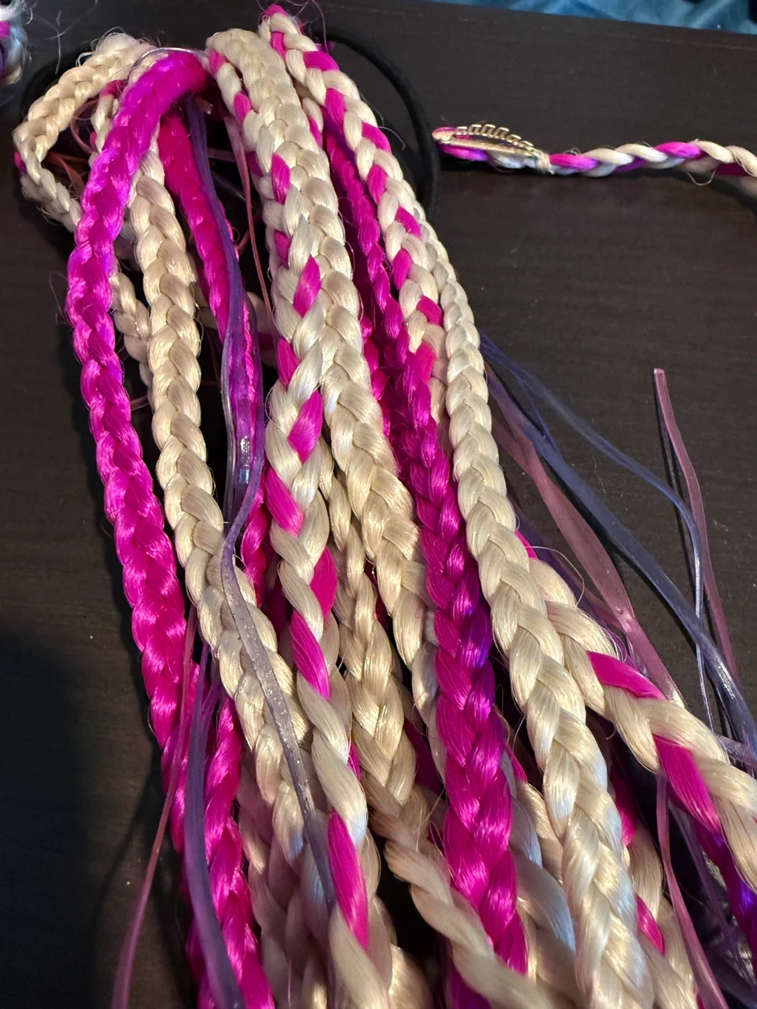 Selling some fun pink and white braided hair extensions! They're in great shape and ready to add some flair to your look. Hand braided and made special - they didn’t end up being a color scheme I loved, I only wore them once.