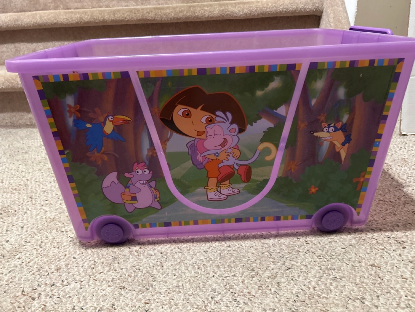 Giving away a Dora the Explorer rolling toy storage bin for free! It's perfect for keeping your little one's toys organized and easy to move around.