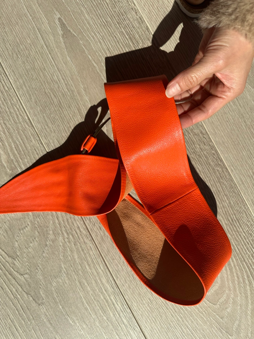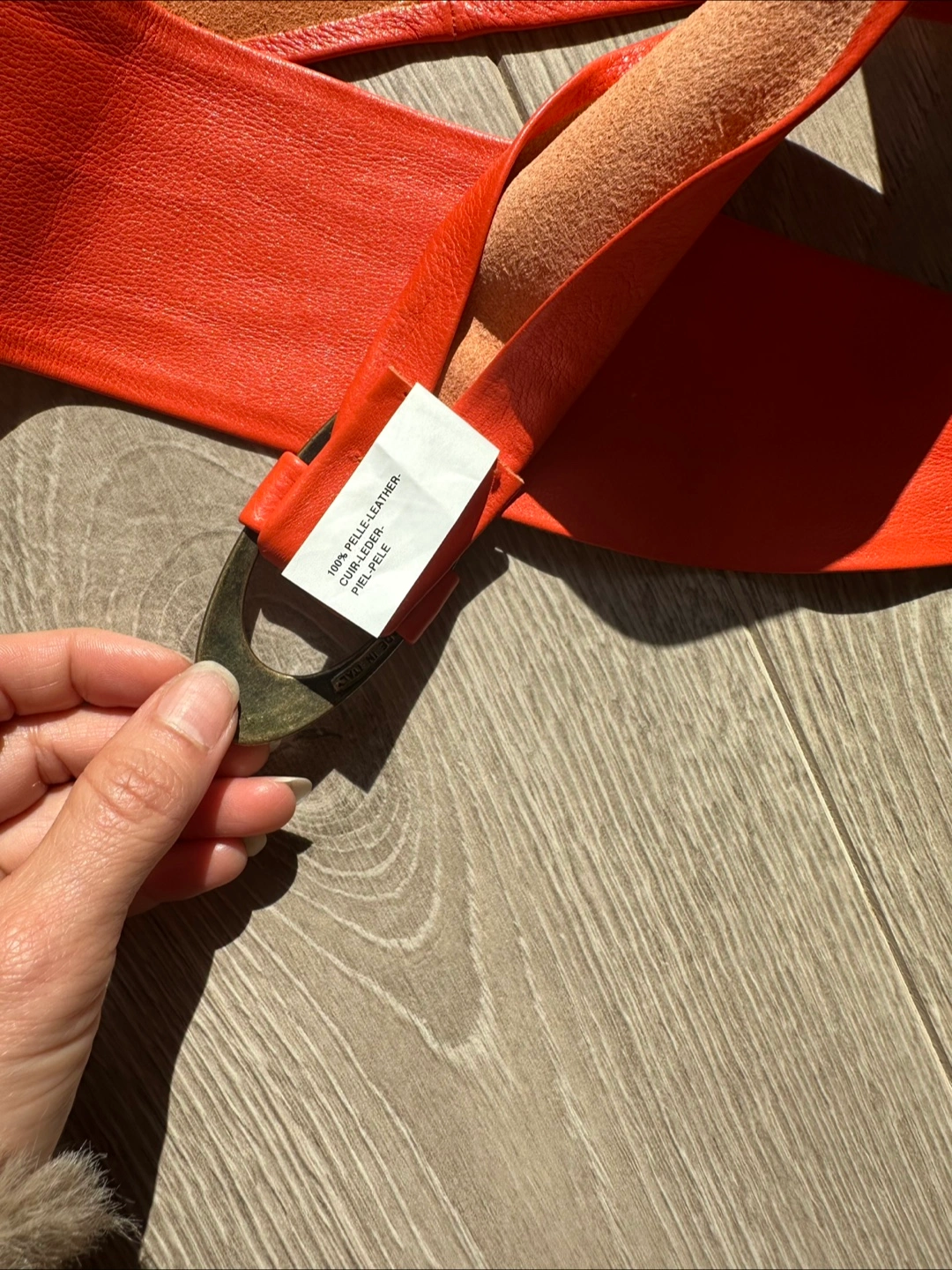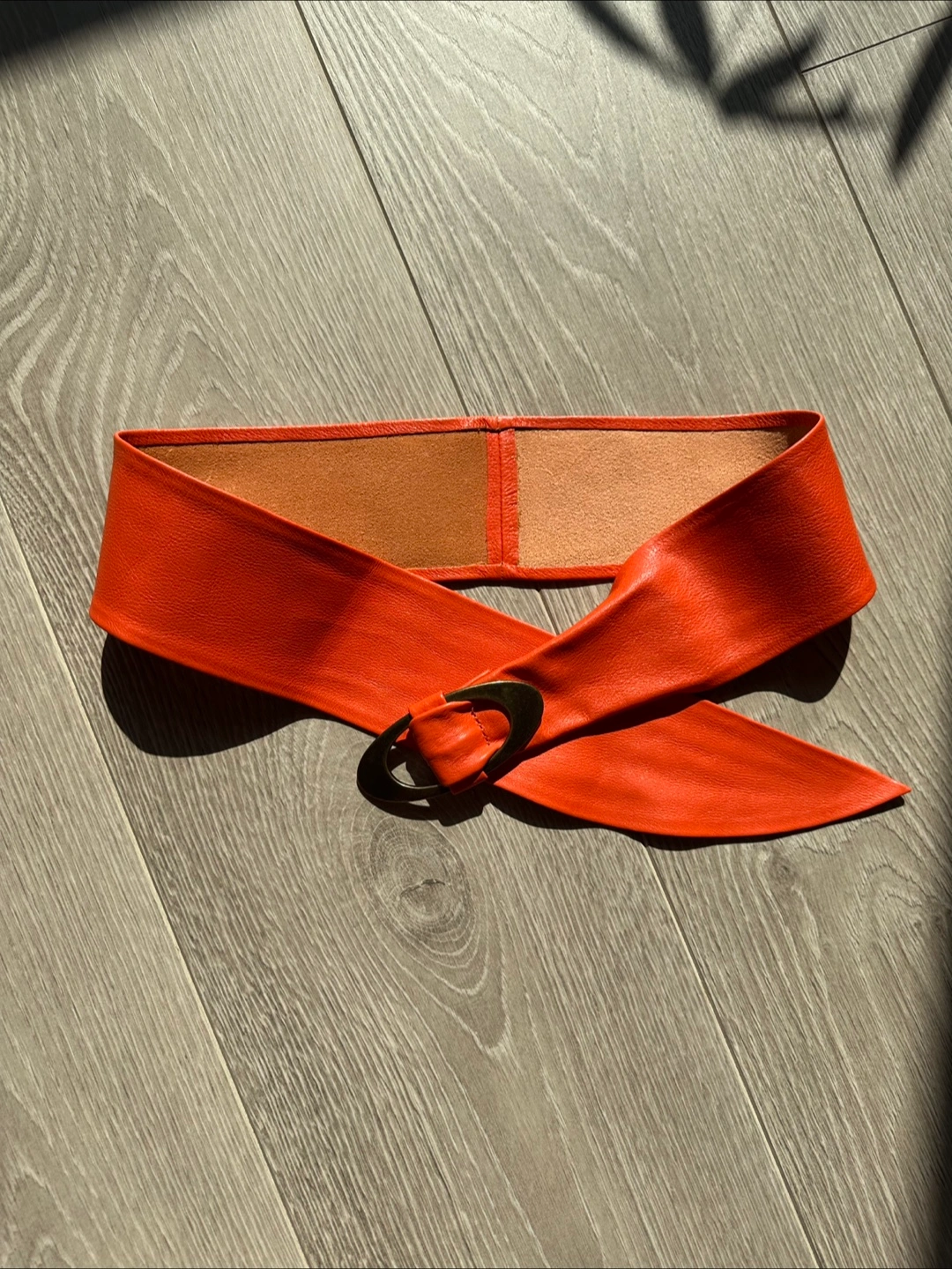 Here's a stylish orange leather belt from United Colors of Benetton! It's made in Italy and is 100% leather. The size is M but more like XS/S. Perfect condition