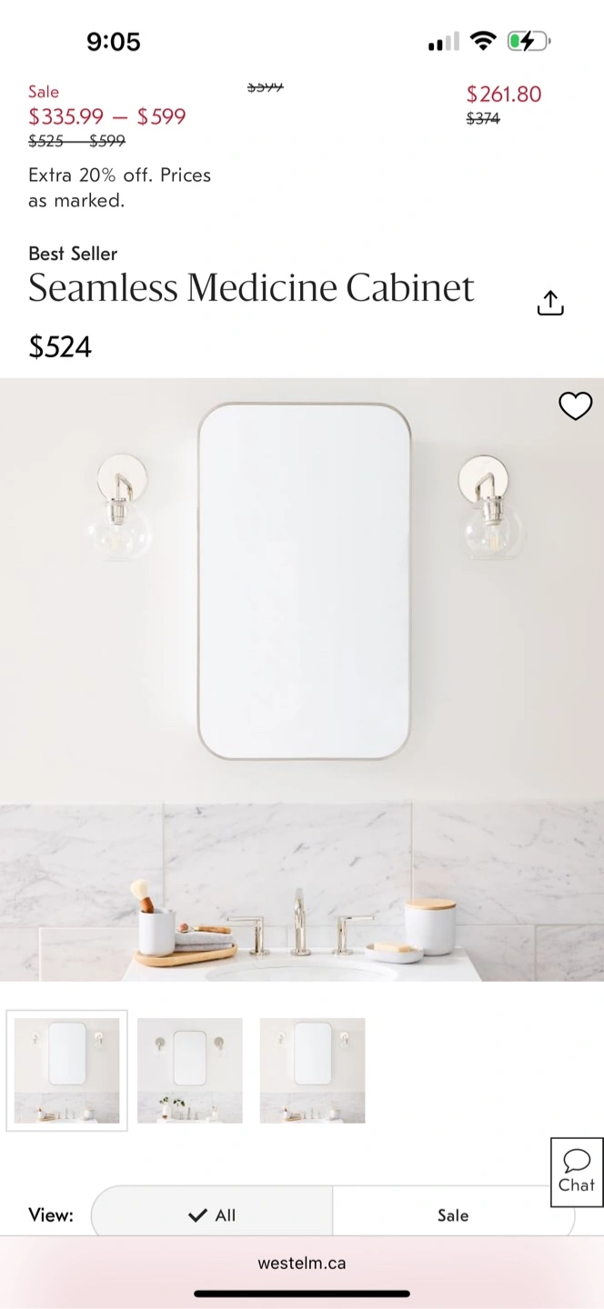I'm selling a brand new West Elm Seamless Medicine Cabinet! It's still in its original packaging. - Select finish: Brushed Nickel - Select size: 16.5"x27.5" It's a beautiful and functional piece for any bathroom