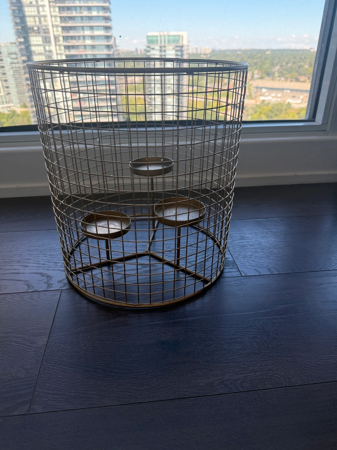 Selling a gold metal wire candle holder. It's in great condition and would look lovely in any room of the house!