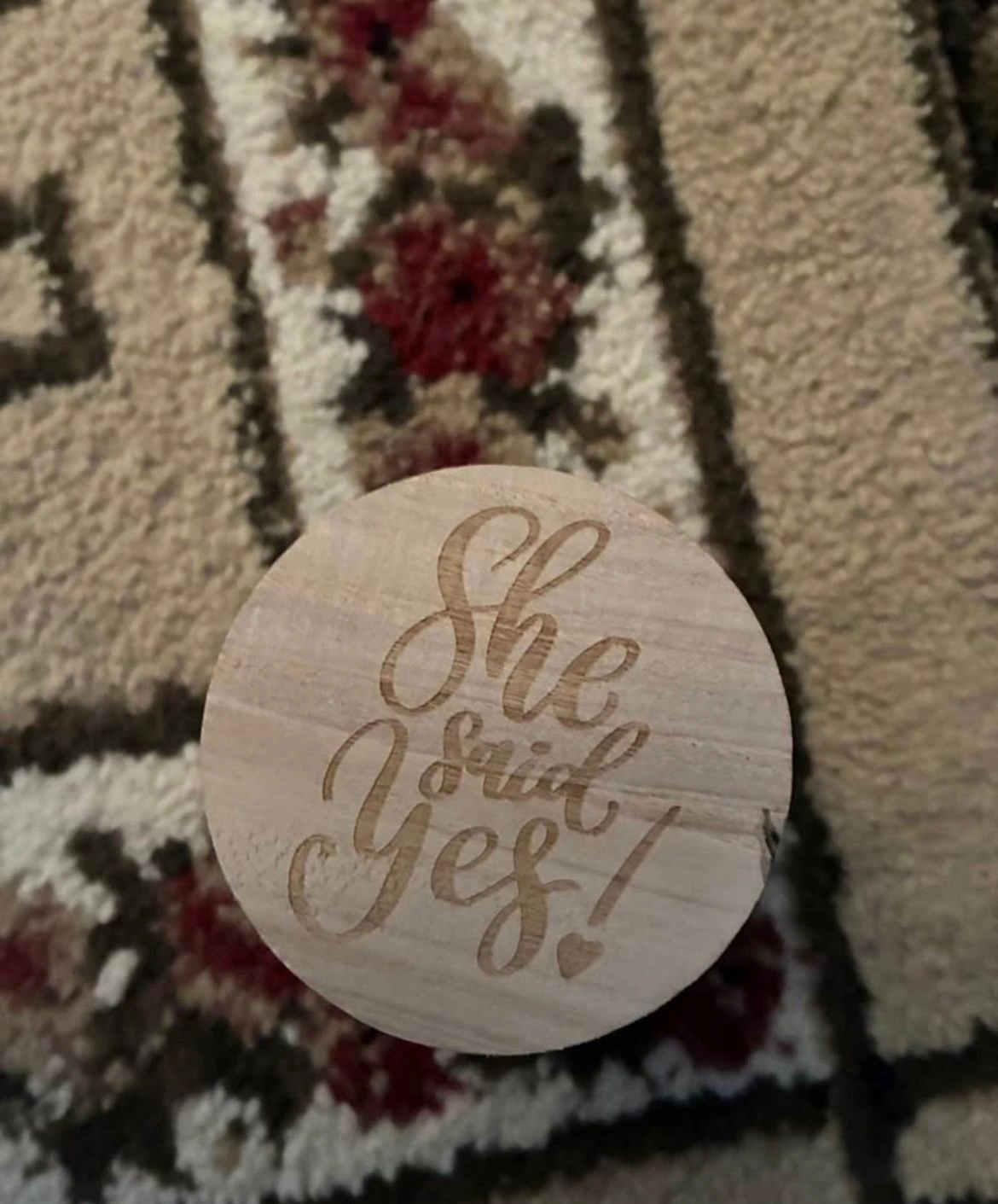 Selling a Sand + Fog candle with a cute 'She Said Yes!' engraving on the wooden lid. The candle is in great shape and ready to bring a lovely scent to your space