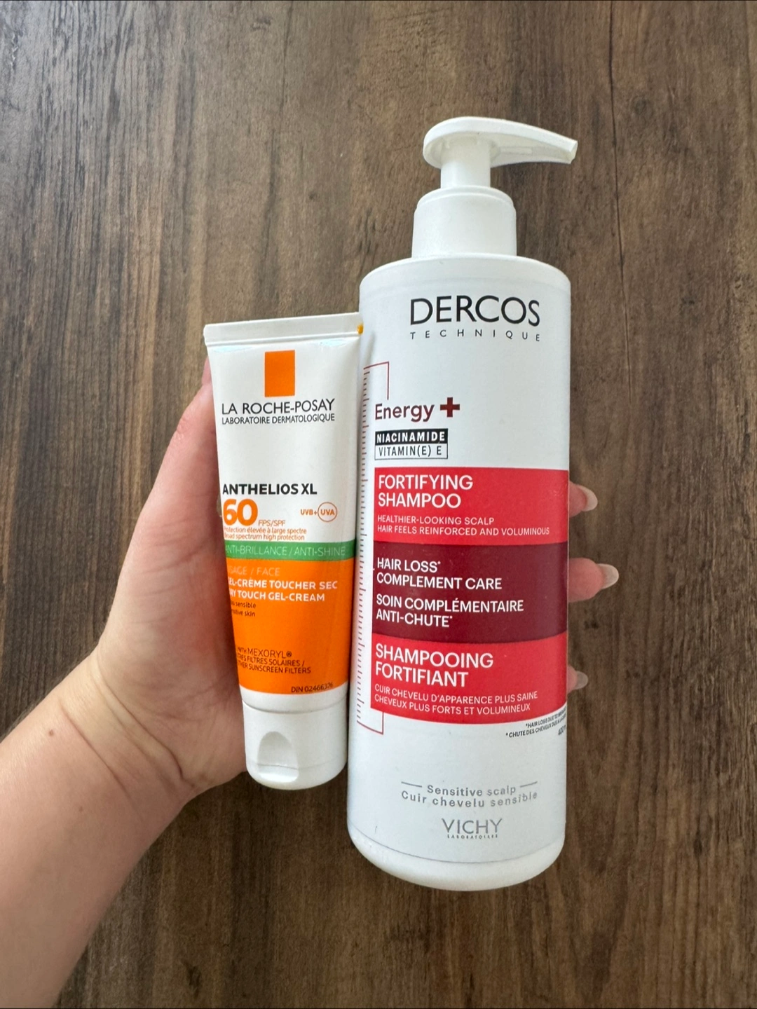 La Roche-Posay Anthelios XL 60 FPS sunscreen and a Vichy Dercos Technique Energy + Fortifying Shampoo! Both are great for sensitive skin and provide excellent protection and care