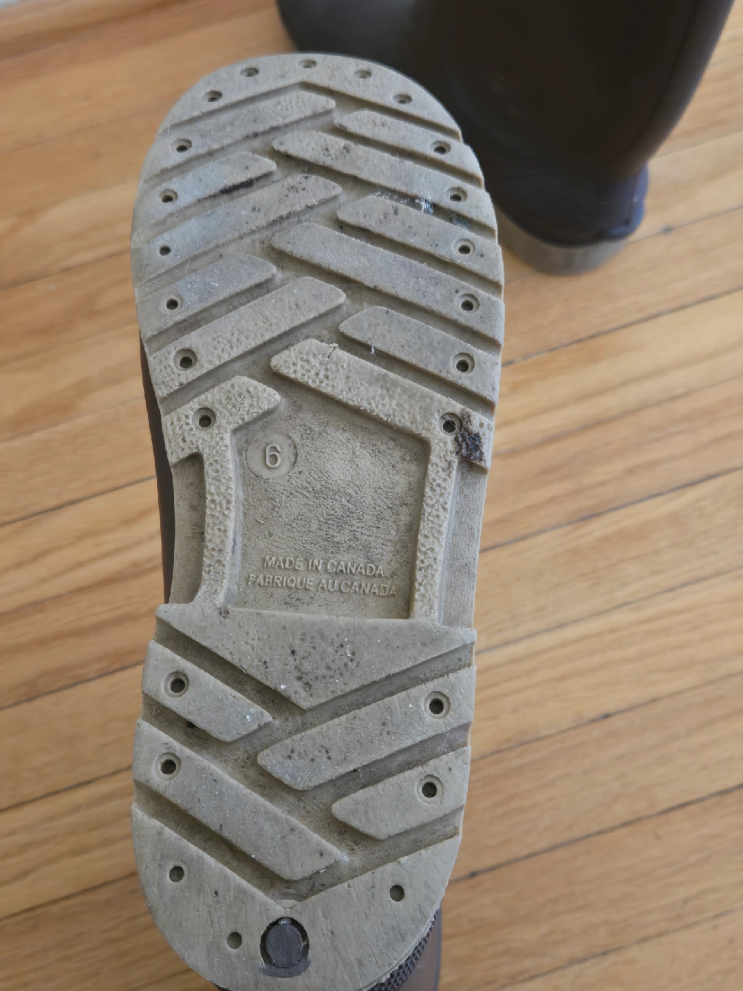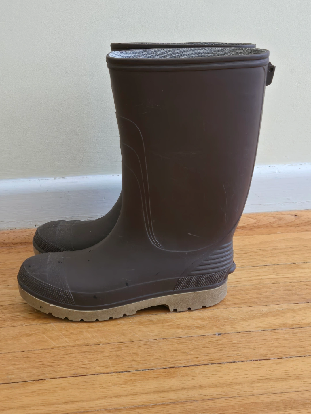 Selling a pair of brown rain boots. They are size 6 and proudly made in Canada. Perfect for keeping your feet dry on those rainy days!