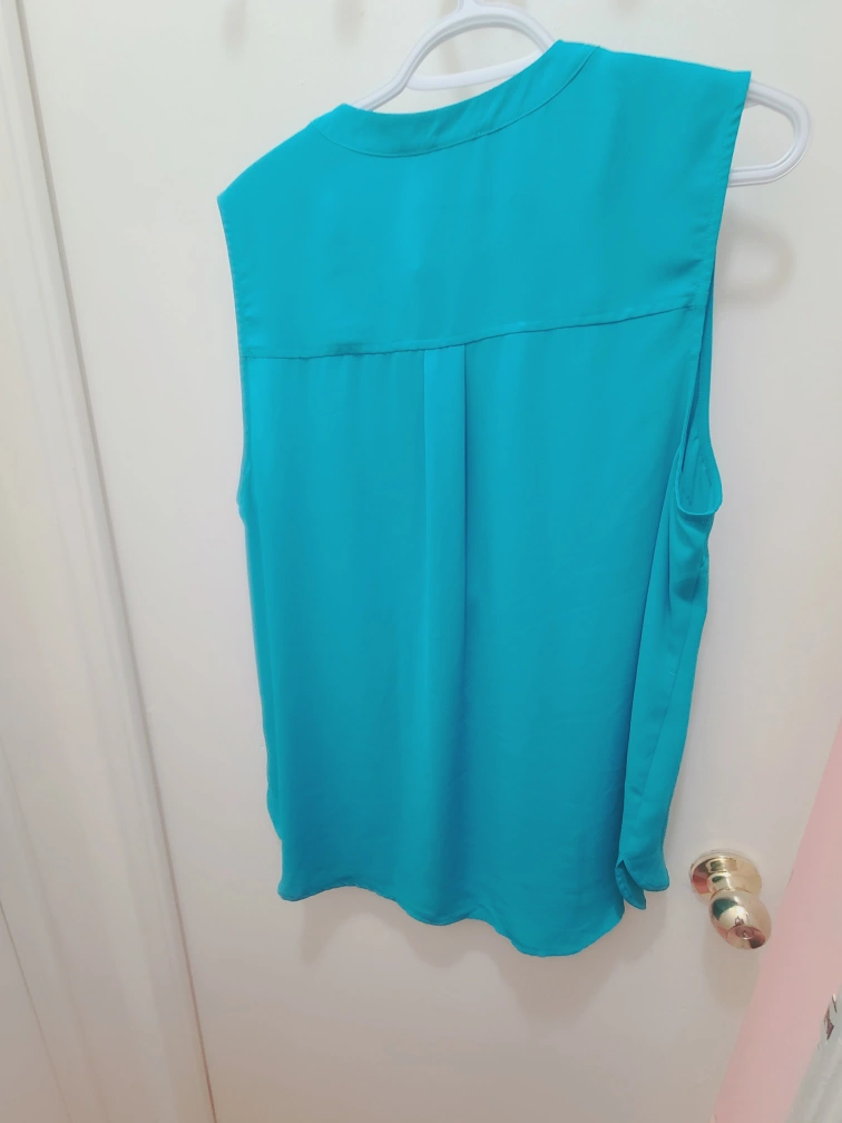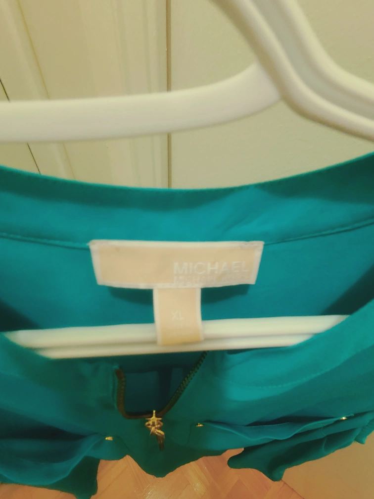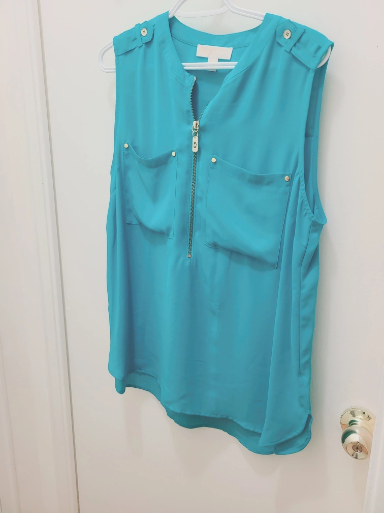 Here's a Michael Kors sleeveless top in size XL. It's a lovely teal colour and features a zipper detail. Perfect for a casual or dressed-up look!