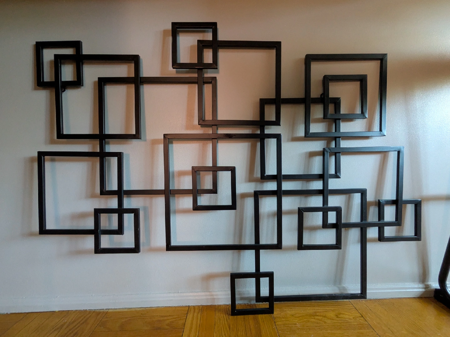 Add a touch of modern art to your home with this unique metal wall decoration! It features a series of interconnected black squares in varying sizes, creating a visually striking geometric design. Perfect for adding a contemporary flair to any room #beatiful💚