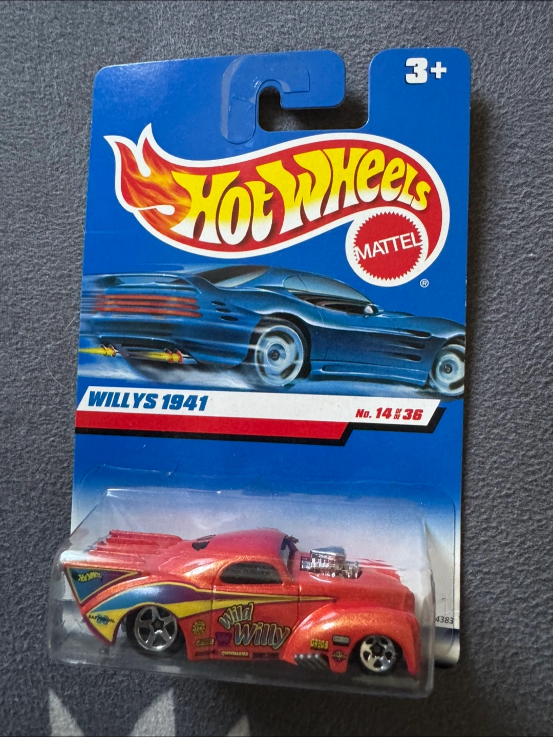 Selling a Hot Wheels Willys 1941, No. 14 out of 36! This collectible die-cast car is perfect for Hot Wheels enthusiasts or anyone who loves classic cars. The packaging indicates it's suitable for ages 3 and up